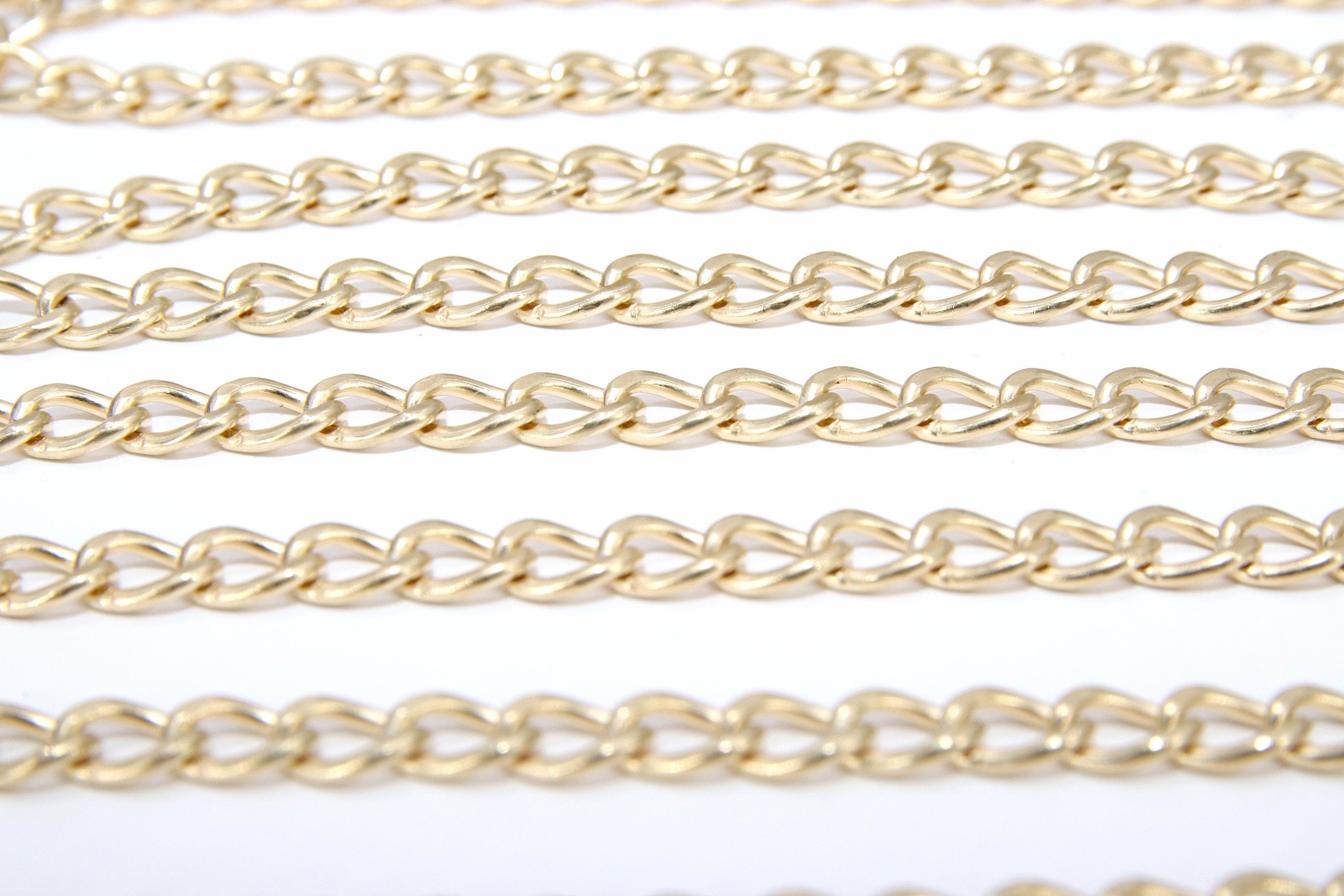 Notes Regarding Chains: All of our chains are cut in a continuous chain unless it is the end of a roll. We do not cut 10 feet in 1 foot sections. Any 925 Sterling Silver or Silver plated chains will tarnish. We suggest keeping your chains in a sealed jewelry bag to help prevent this. I'm sorry but all cut chains are non refundable. We recommend you try a foot sample before large purchases. Stainless steel chains come in gold or silver and are known for their non tarnishing properties. We don't control the colors, where gold may be applied on tight weave or small chains. All of our 14 K Gold Filled chains, charms, or findings are Genuine 14/20 Gold Filled. To be called gold filled by US LAW, the plating needs to be very very thick, at least 5% of weight. We do not replace for slight imperfections, defects, or variations in factory made chains, slight variations from photos, or minor detail damage issues.