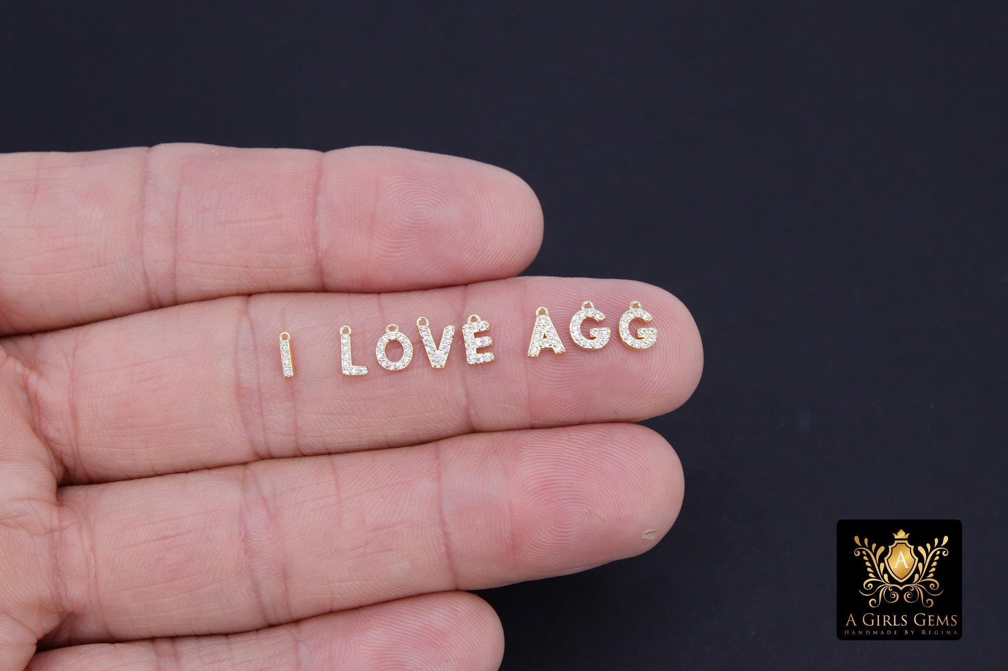 14 K Gold Filled CZ Alphabet Charms, 7 mm 925 Sterling Silver Initial With Jump Ring #3375, Letters