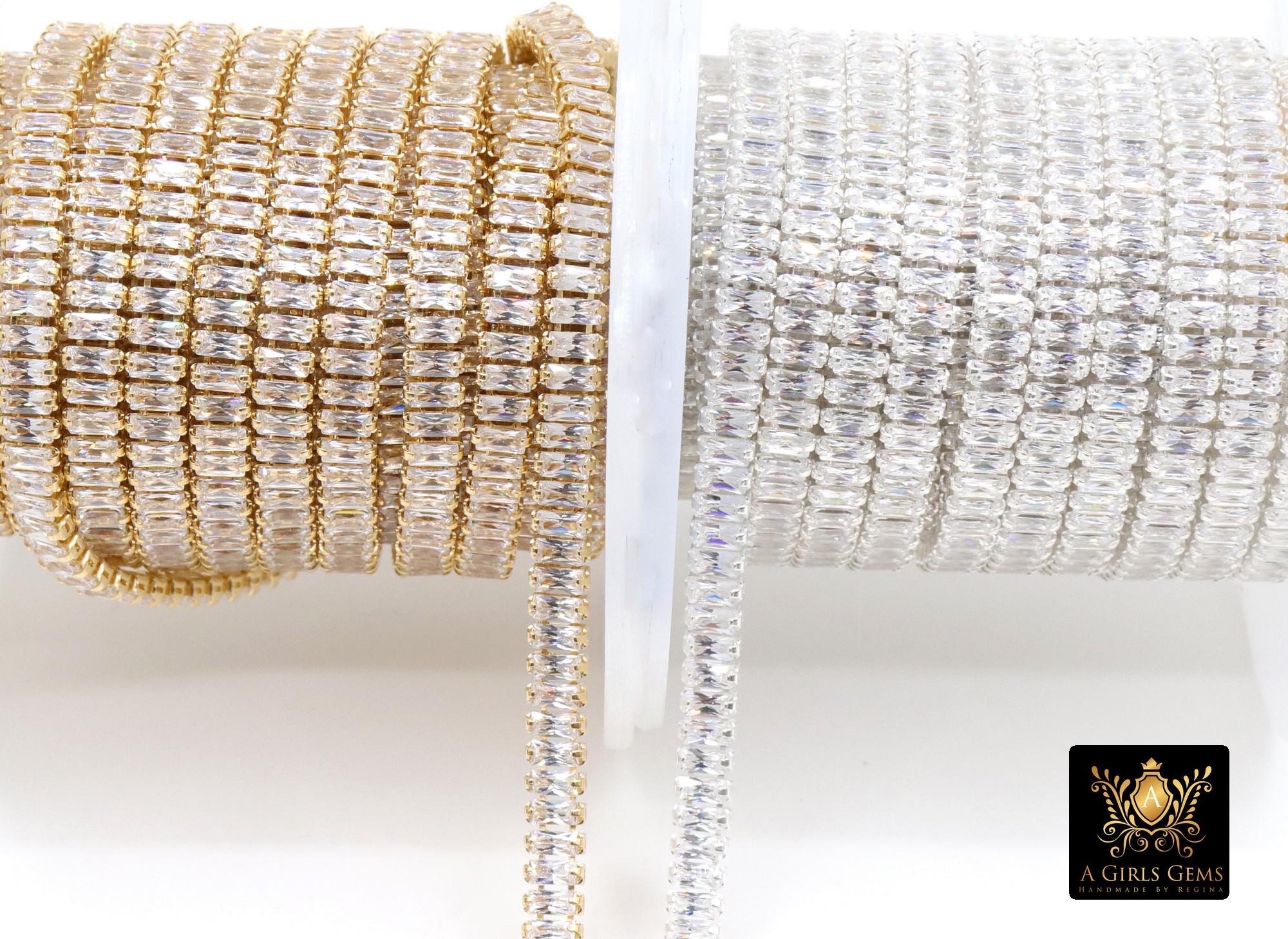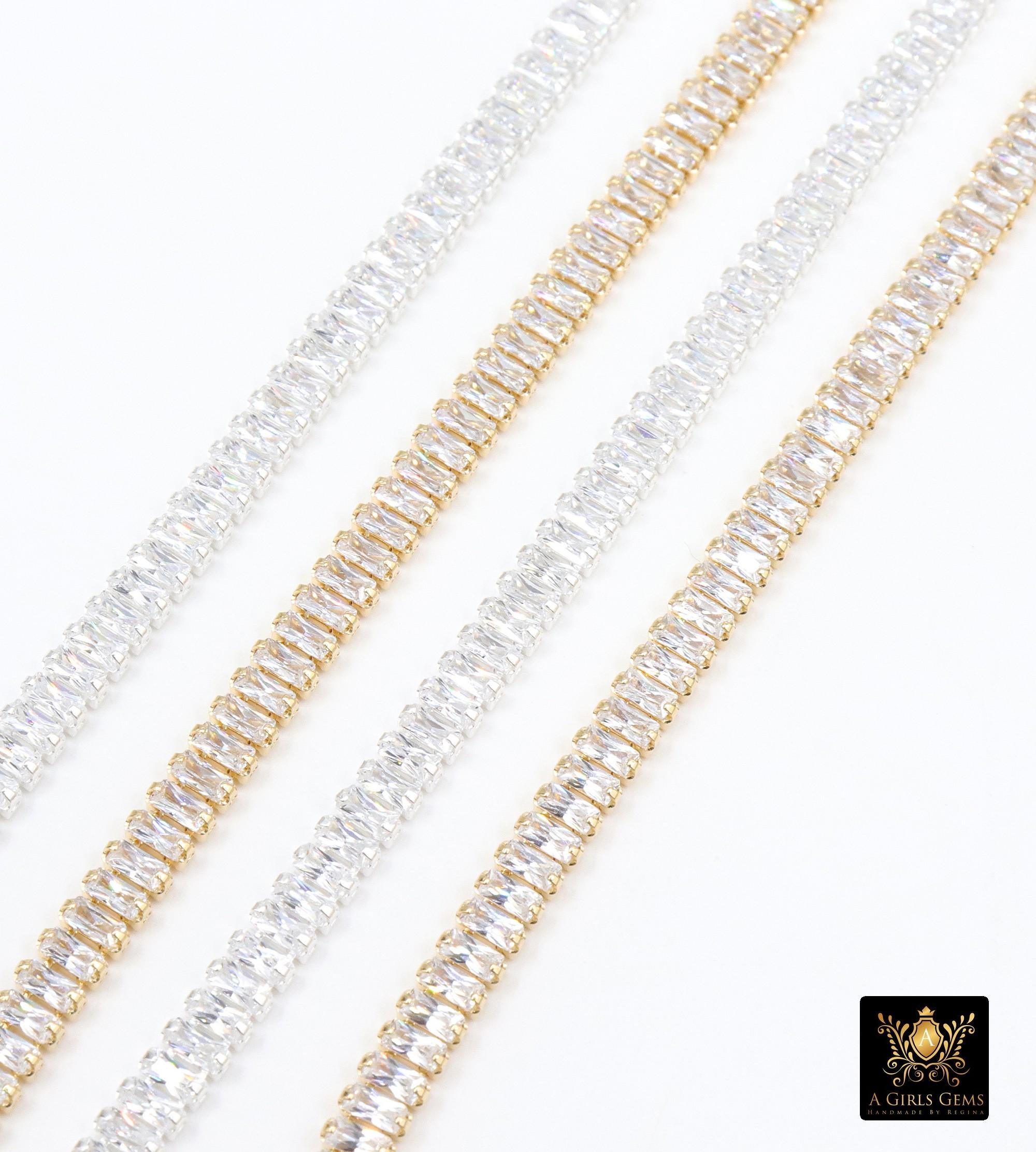 14 K Gold Filled CZ Chain, 3 mm 925 Sterling Silver Genuine Baguette Cubic Zirconia Chain, By The Foot, Minimalist Chain, DIY Bracelets or Necklaces.