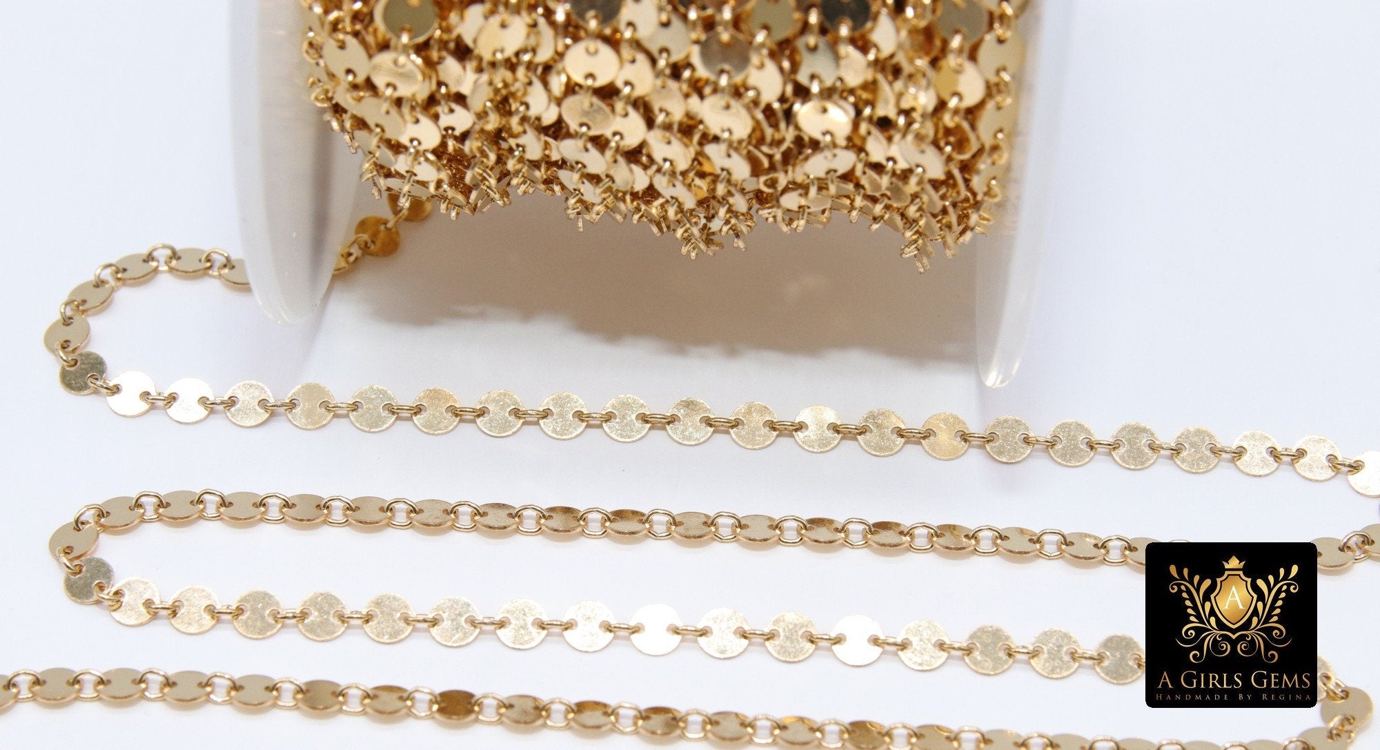 14 K Gold Filled Disc Jewelry Chains, 14 20 Gold Round 4 mm Flat Coin Disc CH# 735, Unfinished Long and Short Chain