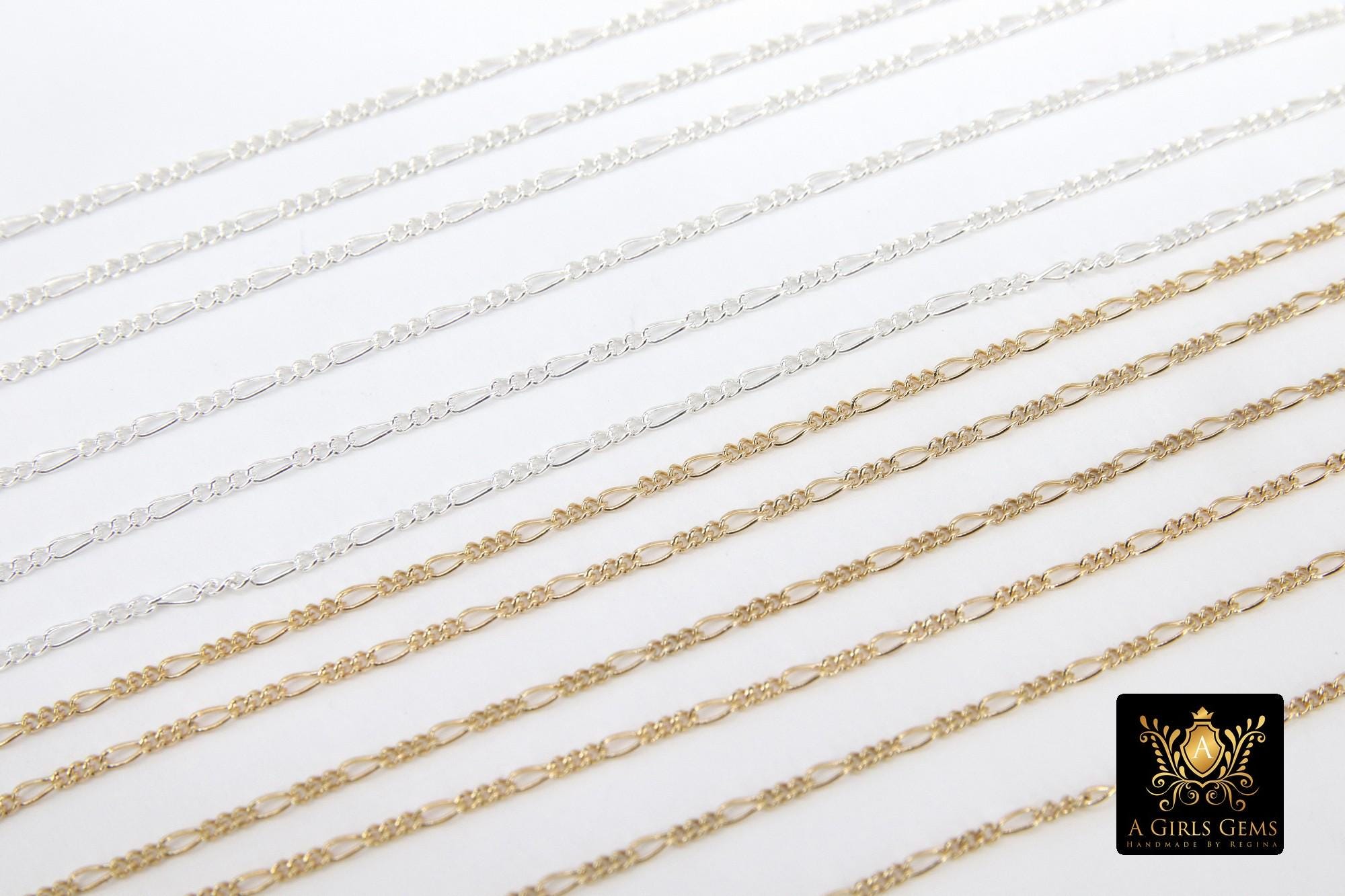 14 K Gold Filled Figaro Chains, 925 Sterling Silver Unfinished By The Foot CH# 913 , 1.3 mm Dainty Long and Short # 885