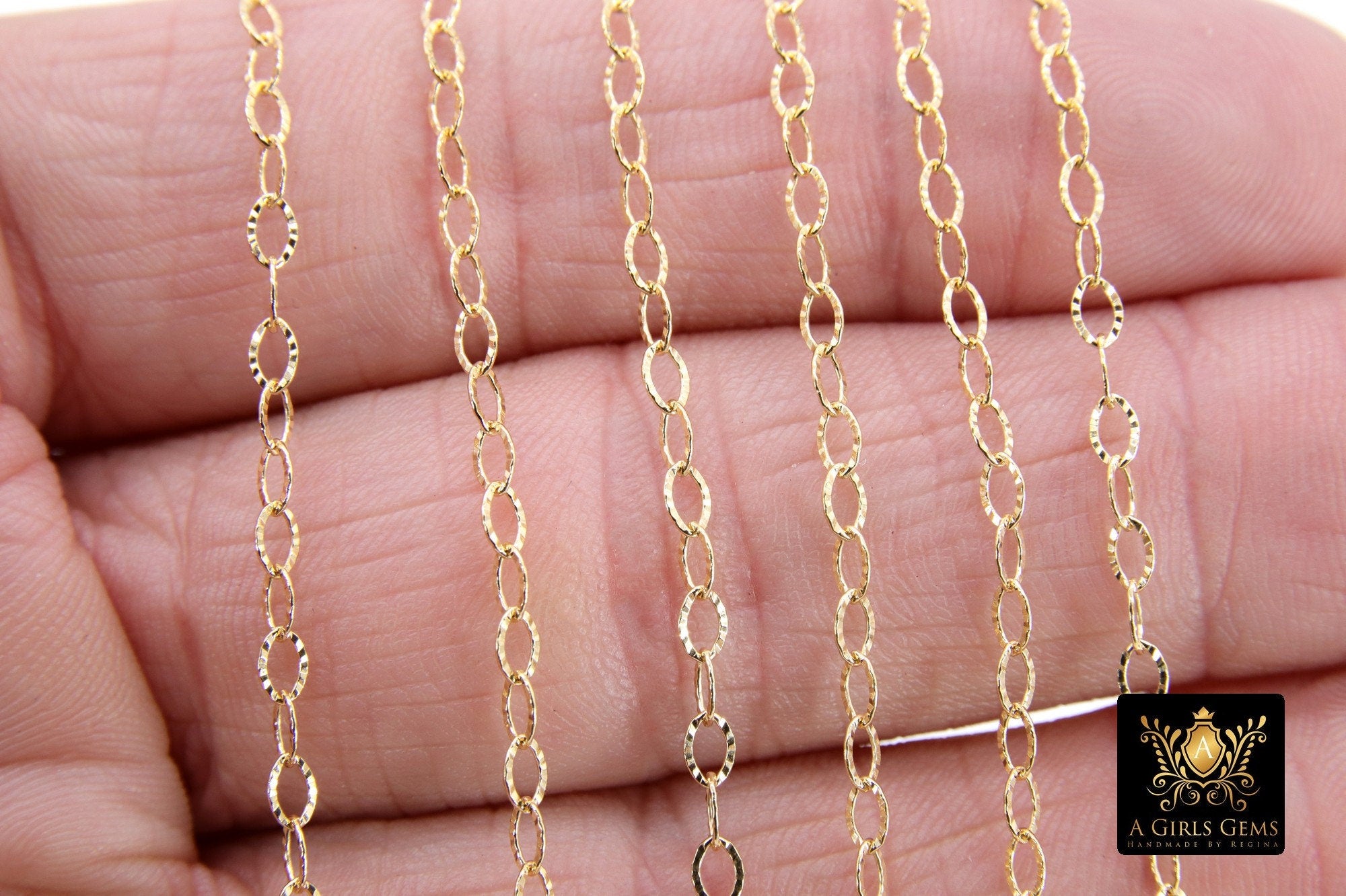 14 K Gold Filled Hammered Chains, 4 mm Oval Textured Chains CH# 776, Unfinished Flat Chain