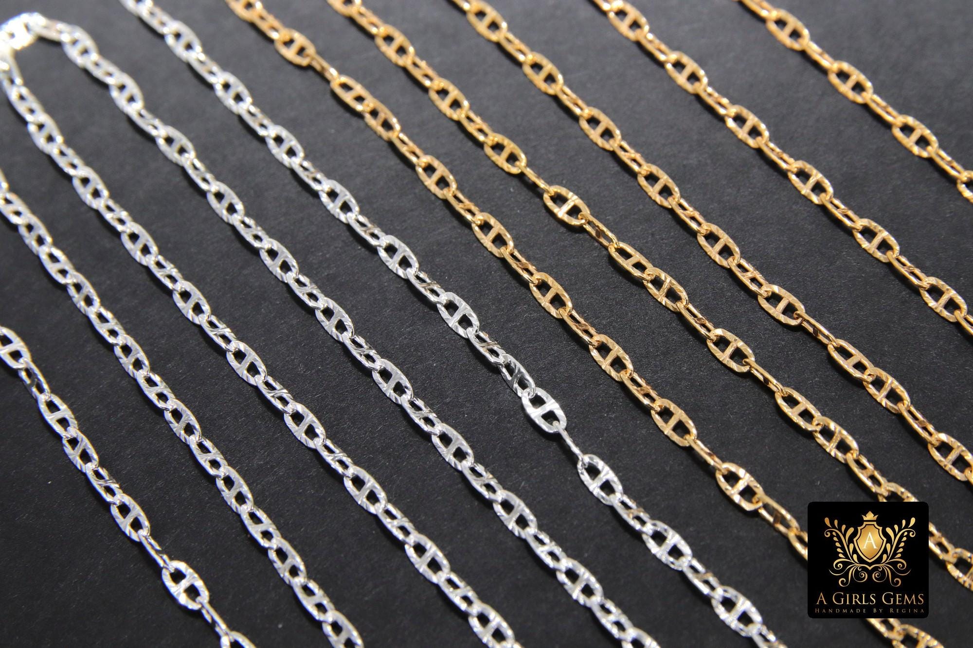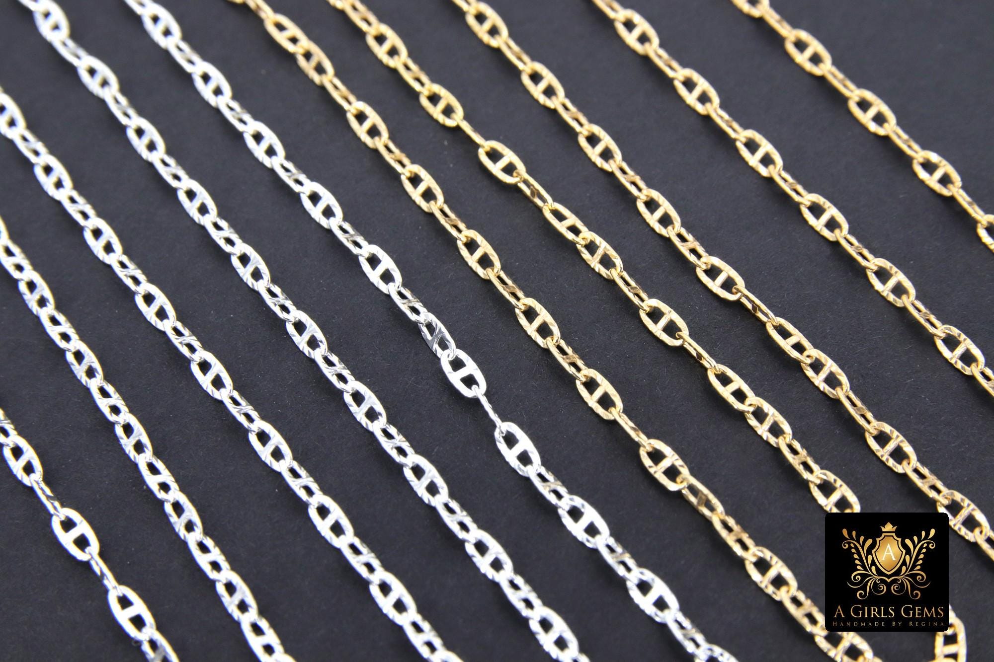 14 K Gold Filled Mariner Chains, 925 Silver Nugget Mariner CH# 907, Anchor Sequin Textured Flat Chain