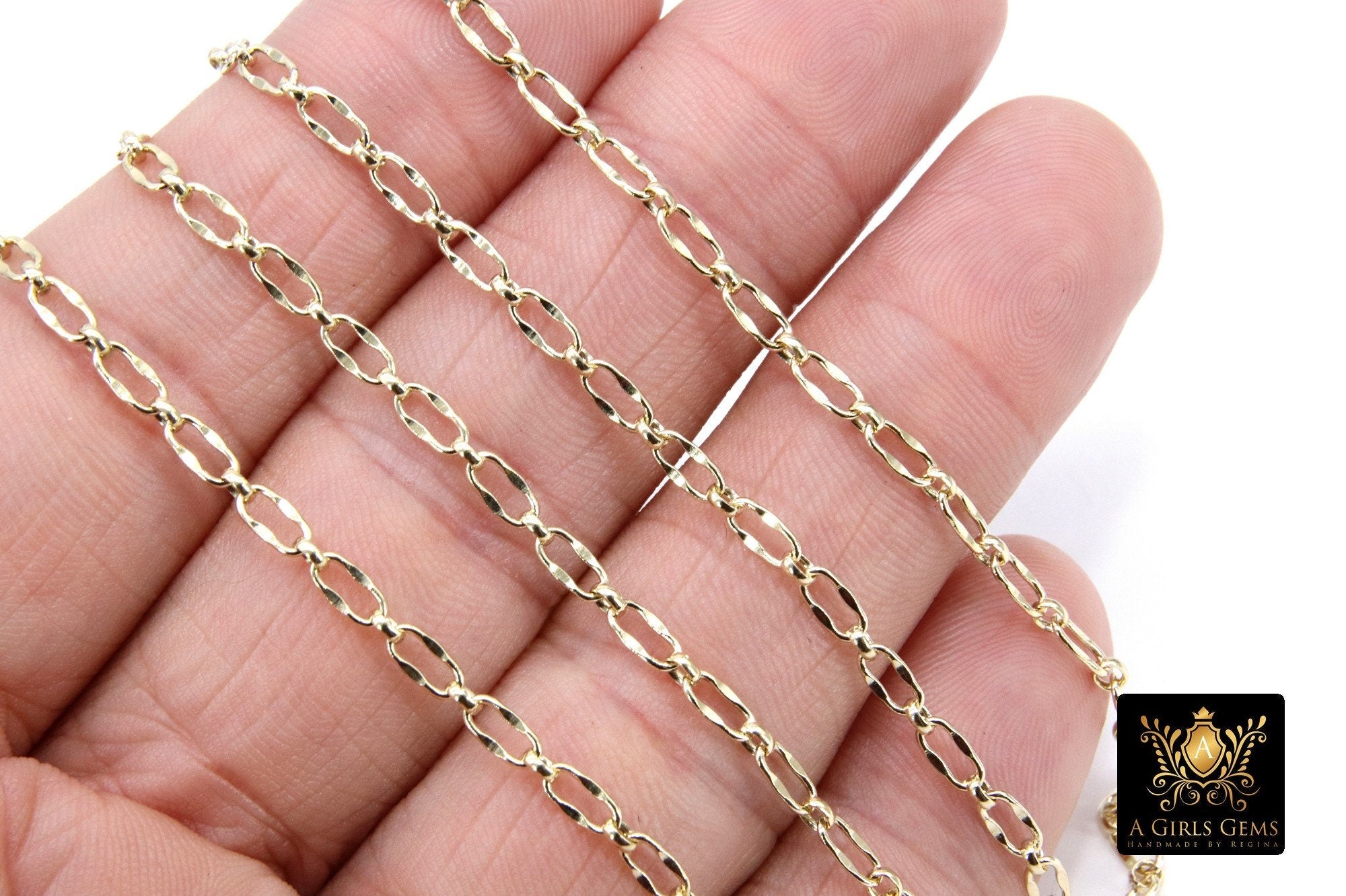 14 K Gold Filled Paper Clip Chains, 14 20 Elongated Nugget Sequin Chain CH# 709, Unfinished Dapped Rectangle and Rolo