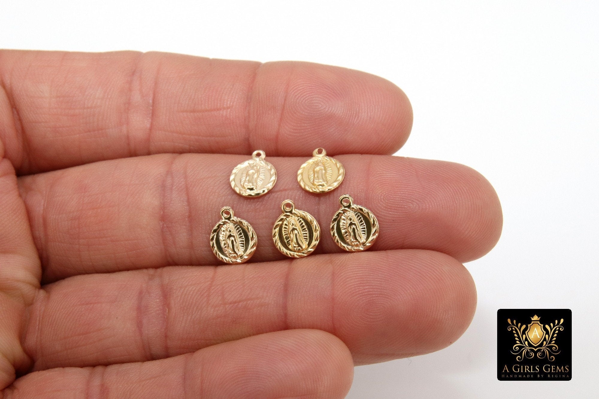 14 K Gold filled Virgin Mary Charm, Tiny 14 20 Gold Miraculous Madonna Bracelet Charms # 2157, Minimalist Rosary Chain Necklace