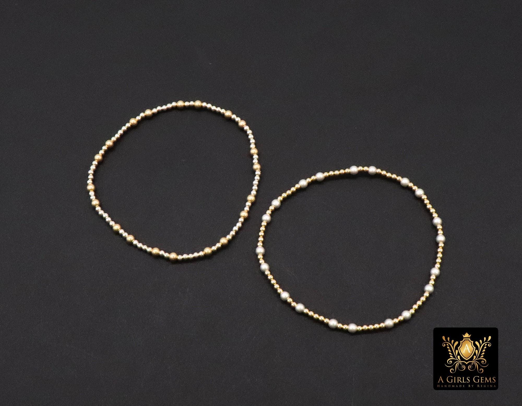 Genuine Permanent Jewelry 14 K Gold Filled or 925 Sterling Silver Round Matte Sandblast Beaded Bracelets, Beaded Mixed Metals, Christmas and Mothers Day Gifts