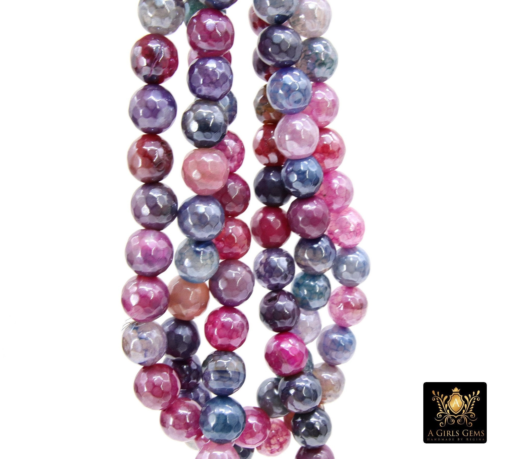 Electroplated Faceted Pink Lavender Agate Beads, Multi Colored Blue Purple Beads BS #241, sizes in 10 mm 14 inch FULL Strands