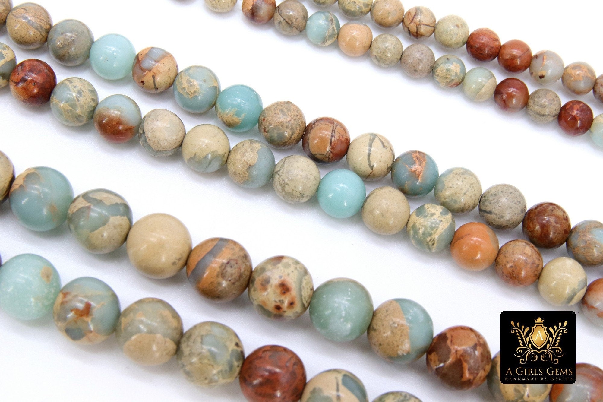 Natural African Blue Turquoise Opal Beads, Beige and Cream Round Jasper Beads BS #15, sizes 6mm 8mm 10mm 15.75 inch Strands