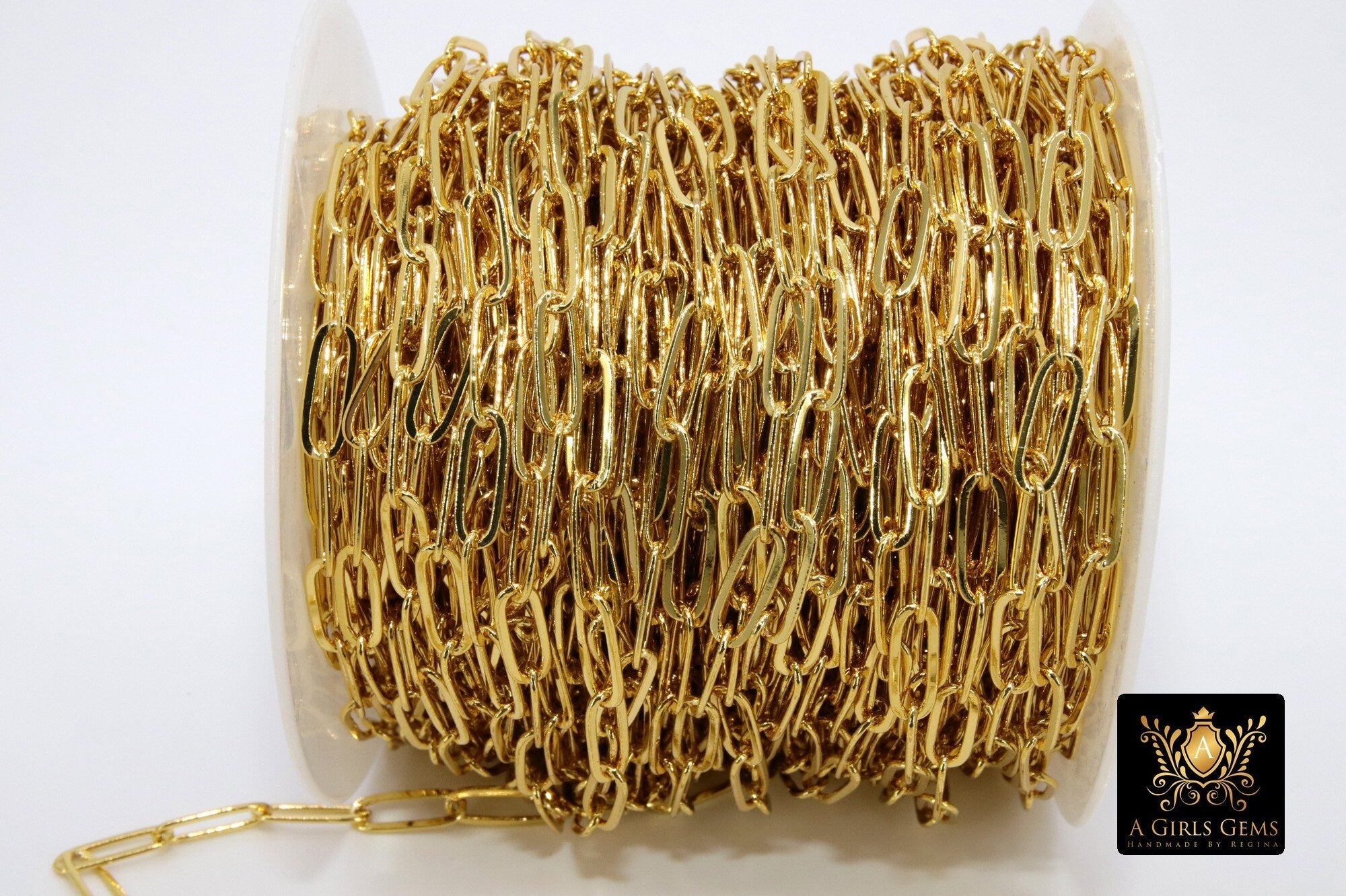 Rectangle Drawn Chain, Unfinished Gold Paperclip Chains CH #121, Silver Necklace Cable Chains