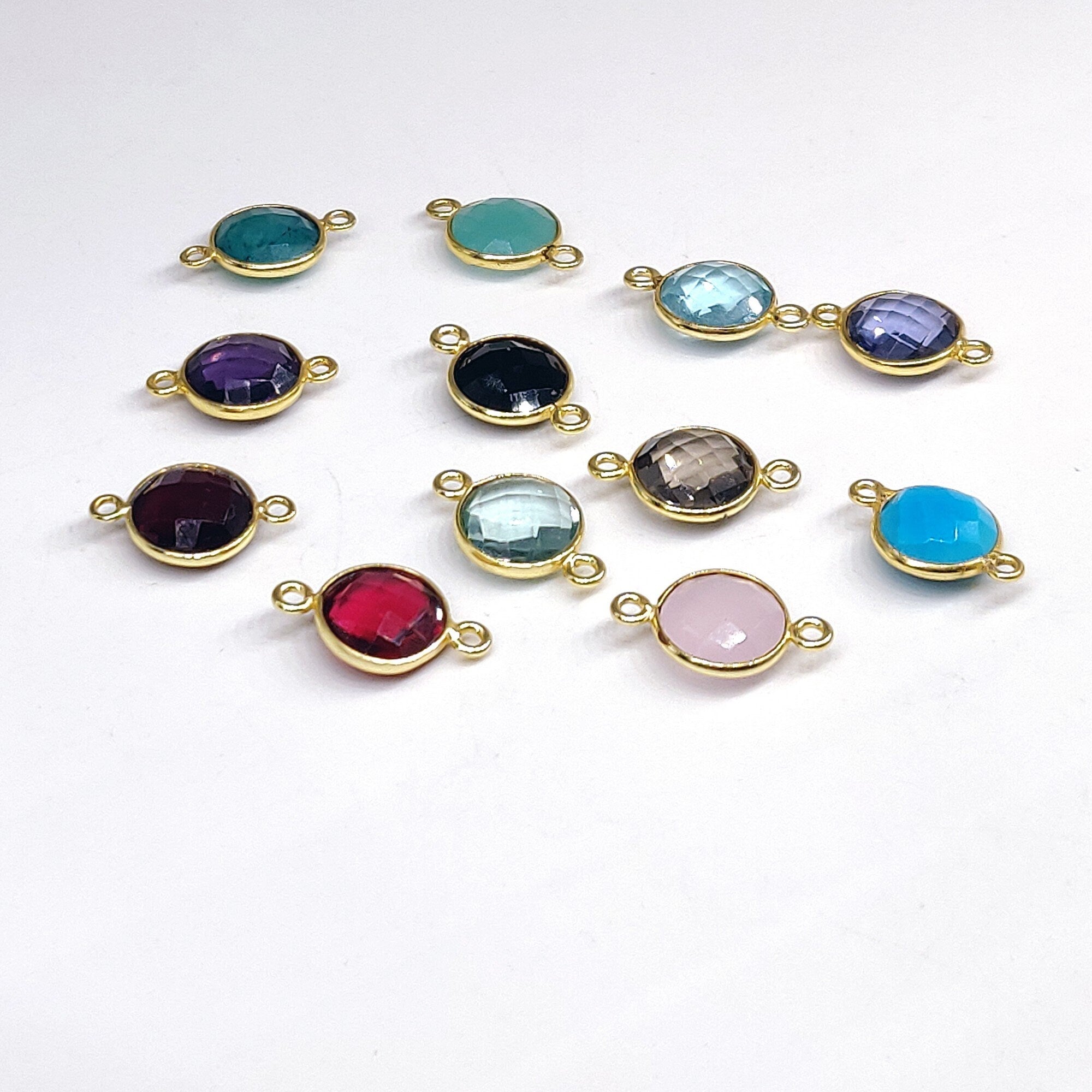 Round Gemstone Connectors, Gold Gemstone Charms, Birthstone Links