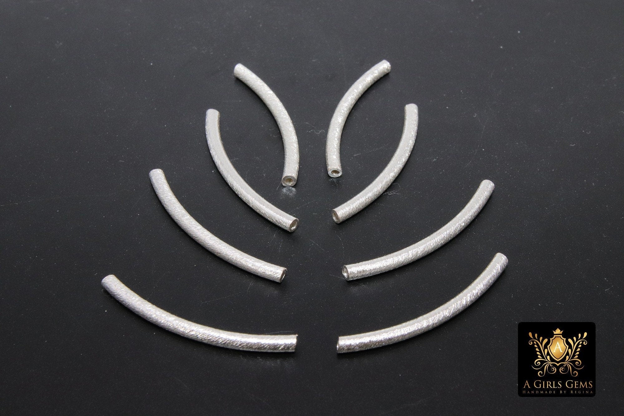 Brushed Silver Curved Long Tube Metal Spacer Bead Jewelry Findings
