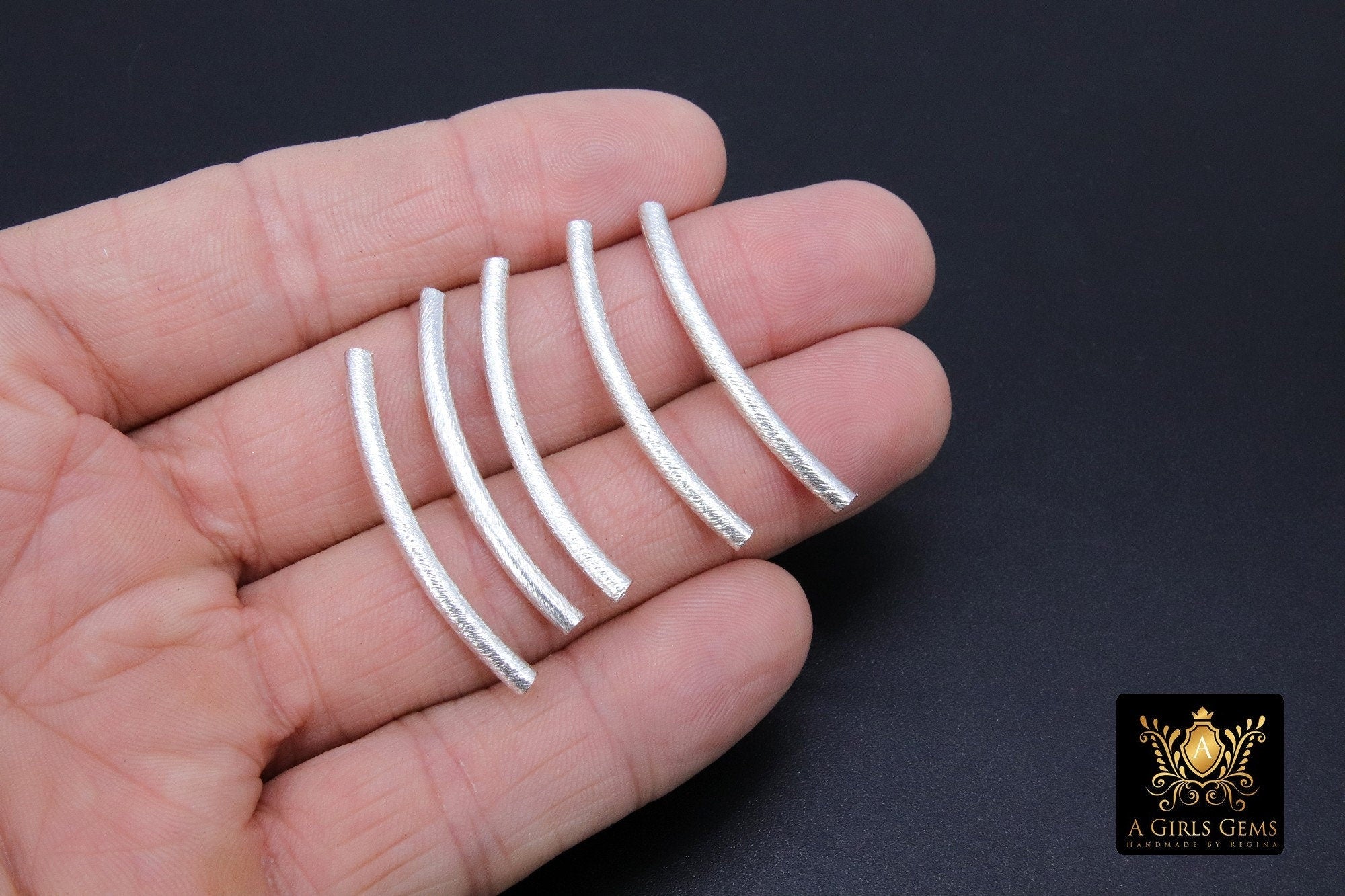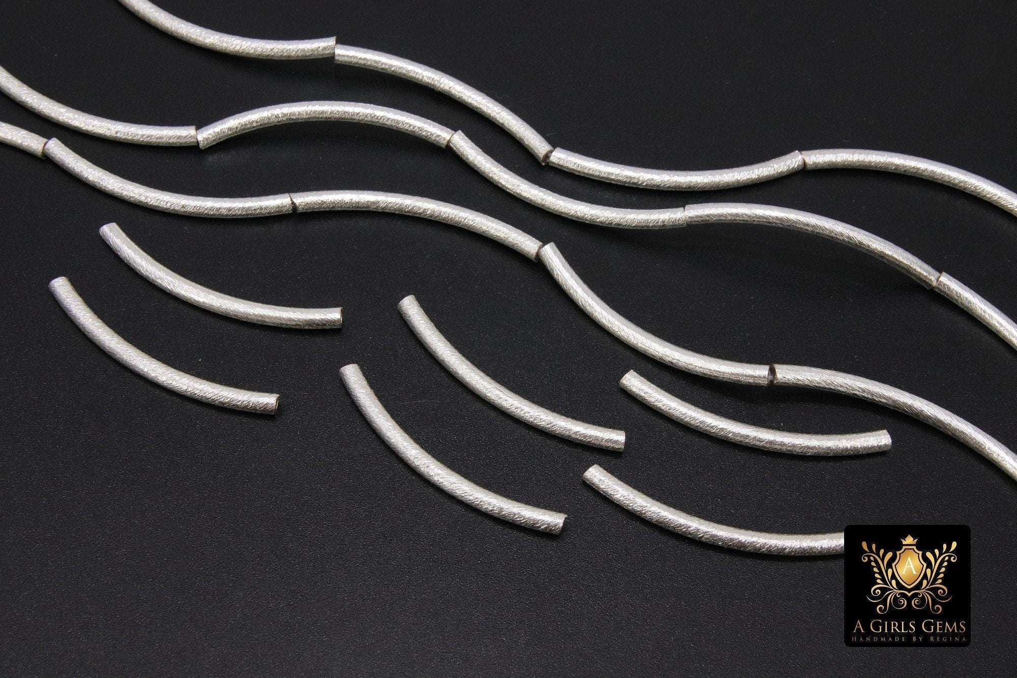 Silver Tube Spacer Beads, 10- 160 pcs Hollow Curved Brushed Silver Metal Bead # 3142, 3 x 40 mm Findings