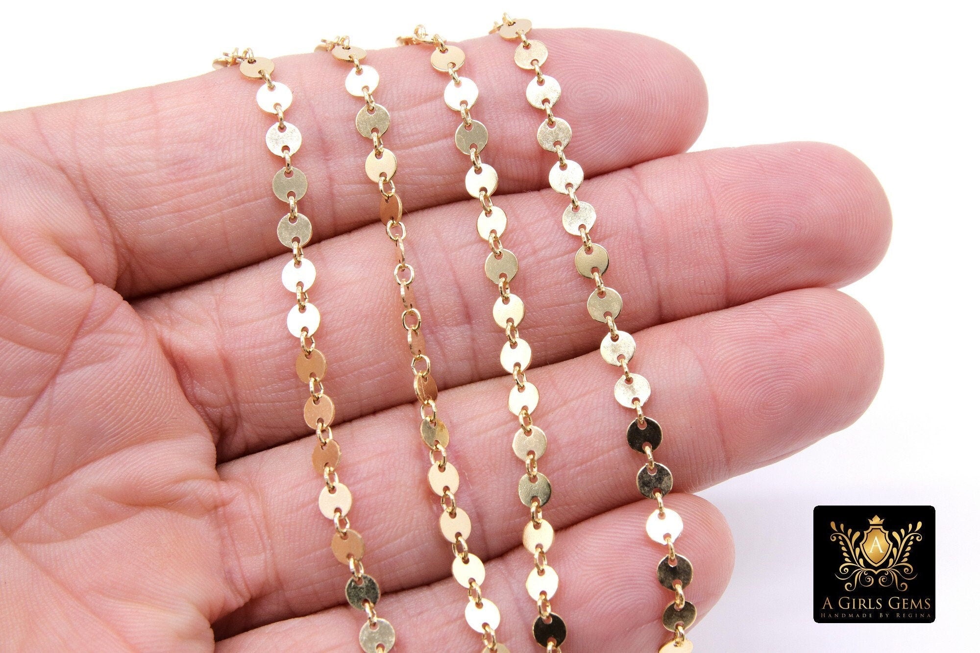 14 K Gold Filled Disc Jewelry Chains, 14 20 Gold Round 4 mm Flat Coin Disc CH# 735, Unfinished Long and Short Chain