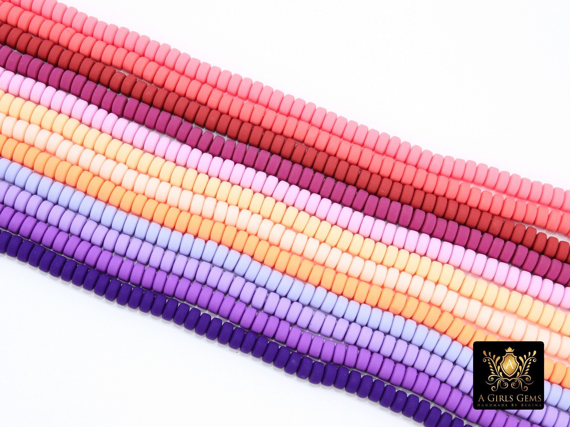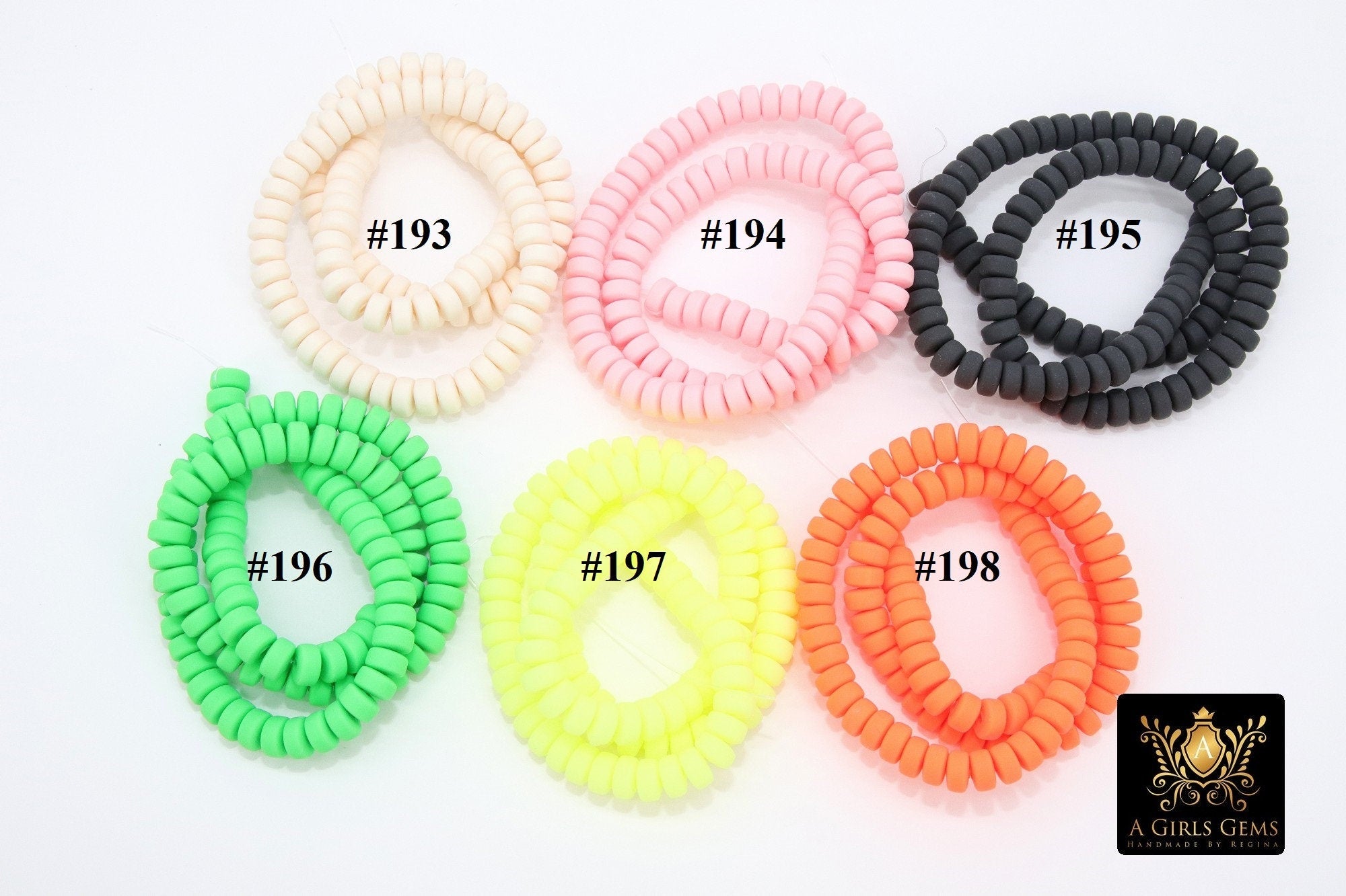 6 mm Clay Rondelle Beads, Heishi Flat Beads in Polymer Clay Disc CB #174, 3 mm Rondelle Stone Beads