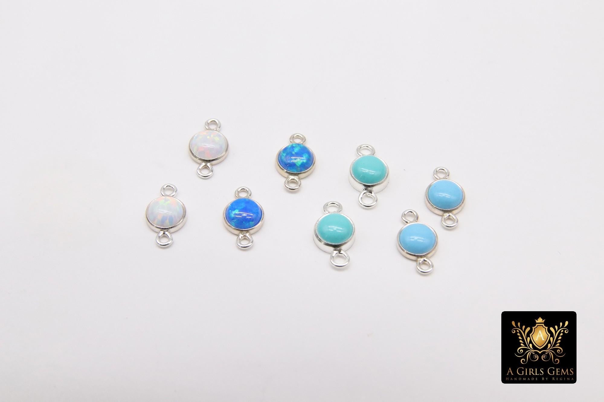 925 Sterling Silver Solitaire Connectors, 4 mm White Opal Links # 2338, Pink CZ Style Silver Blue Opal