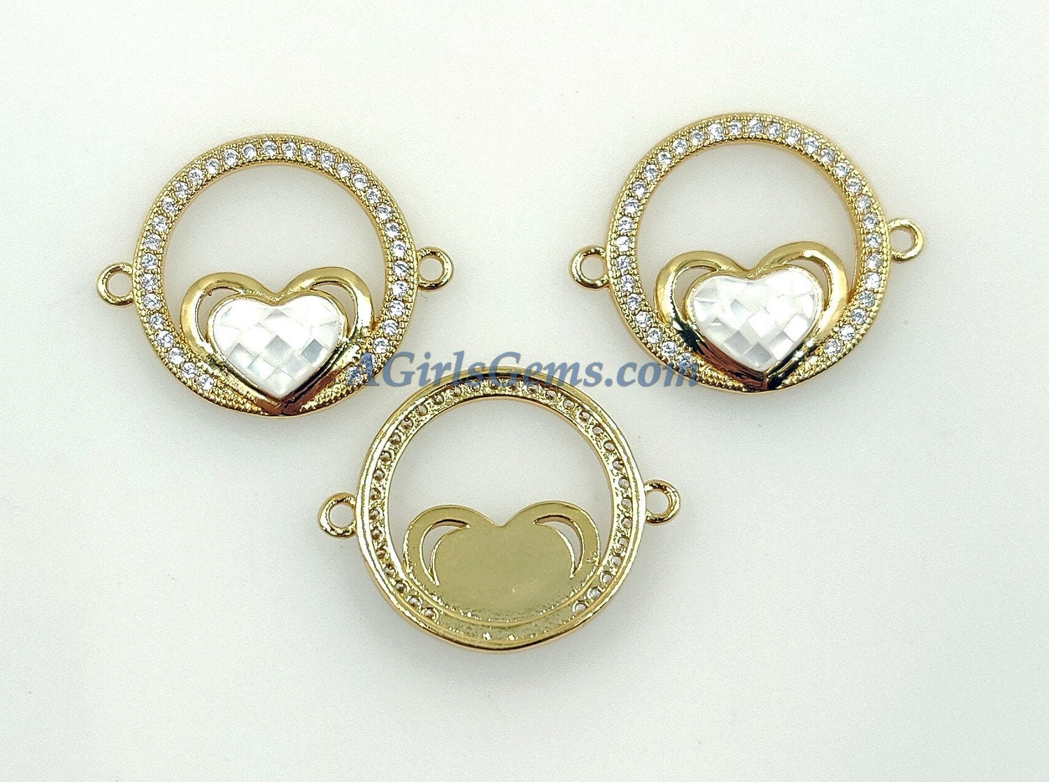 CZ Micro Pave Heart Connectors, Round White Shell Love Charm Beads, 18 K Gold Plated Sacred Charms Link for Bracelets/Rosary Necklaces