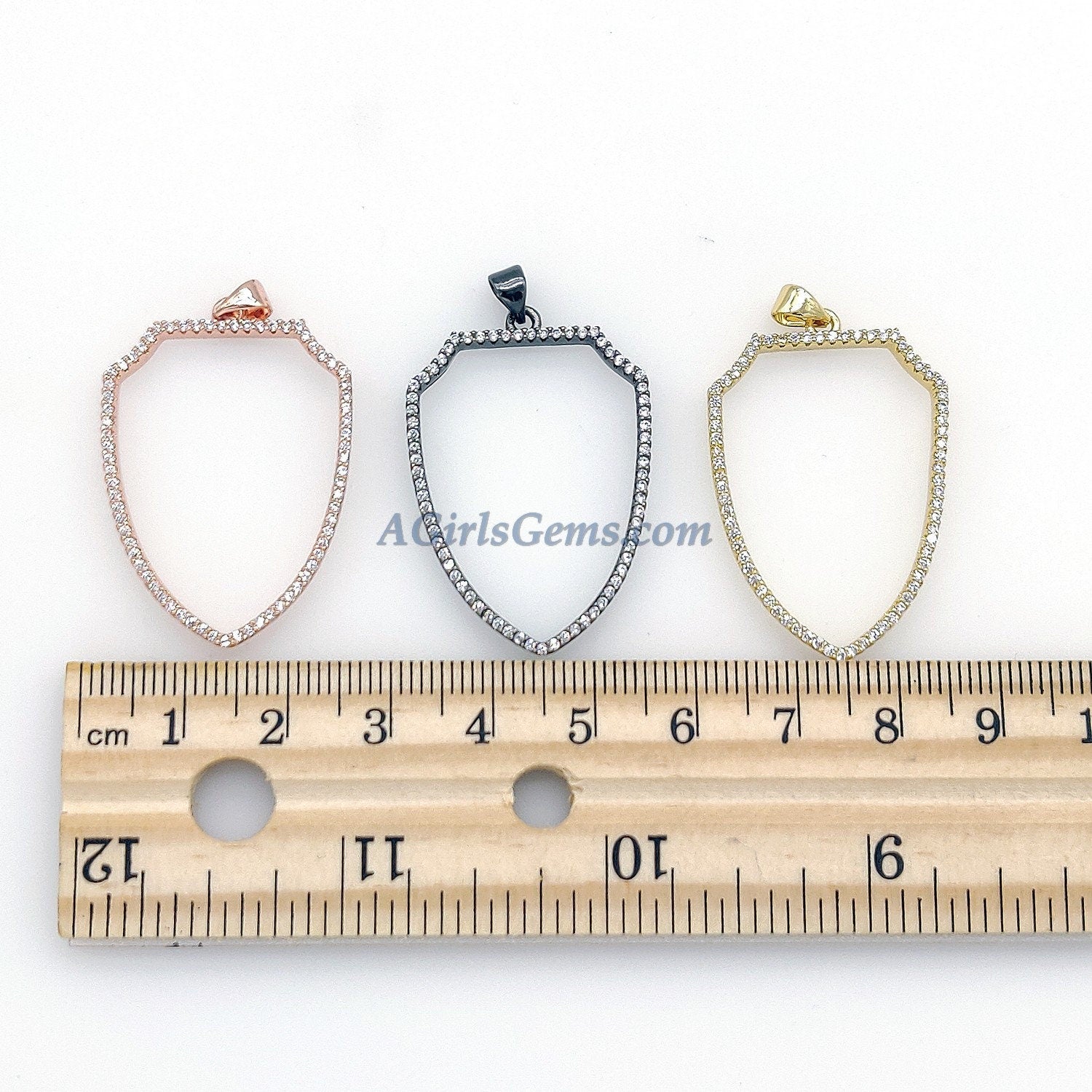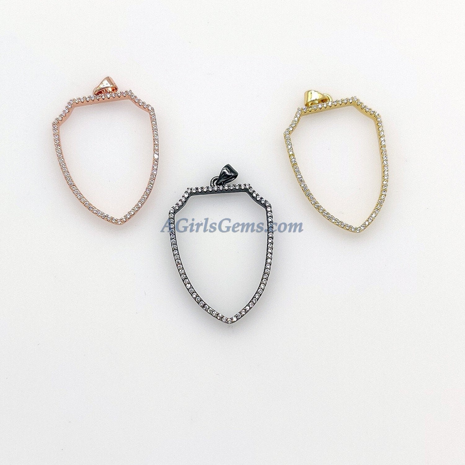 Micro Pave Frames, Shield Charm, CZ Diamond Pave Cubic Zironia, Gold, Rose Gold, Gunmetal Black 40 mm Pendants DIY Earring and Necklace Charm Connectors AGGSM223.