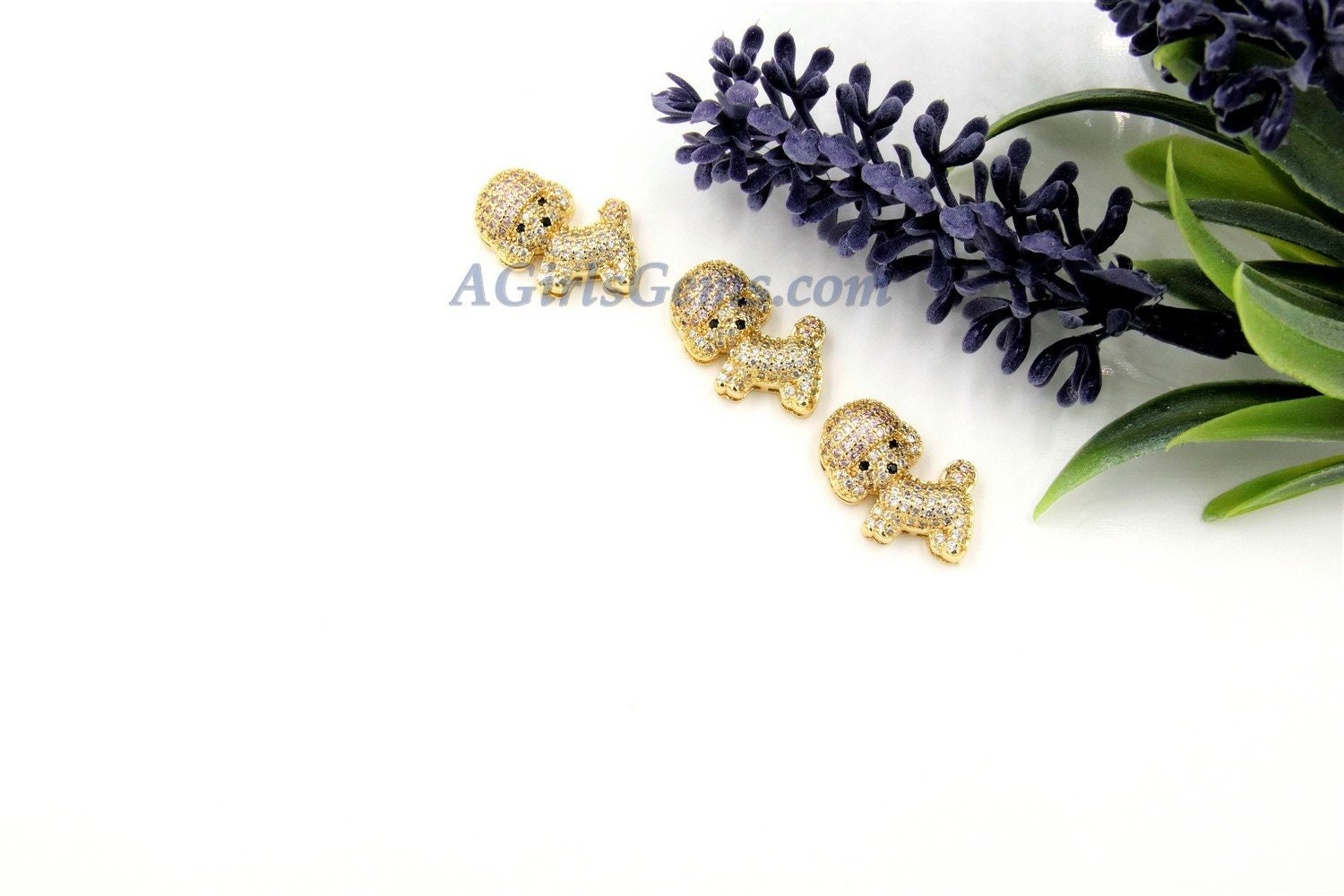 Puppy Charm Pendant Bead, CZ Micro Pave Gold Poodle Charms, Pet Lover Necklace pendant Beads