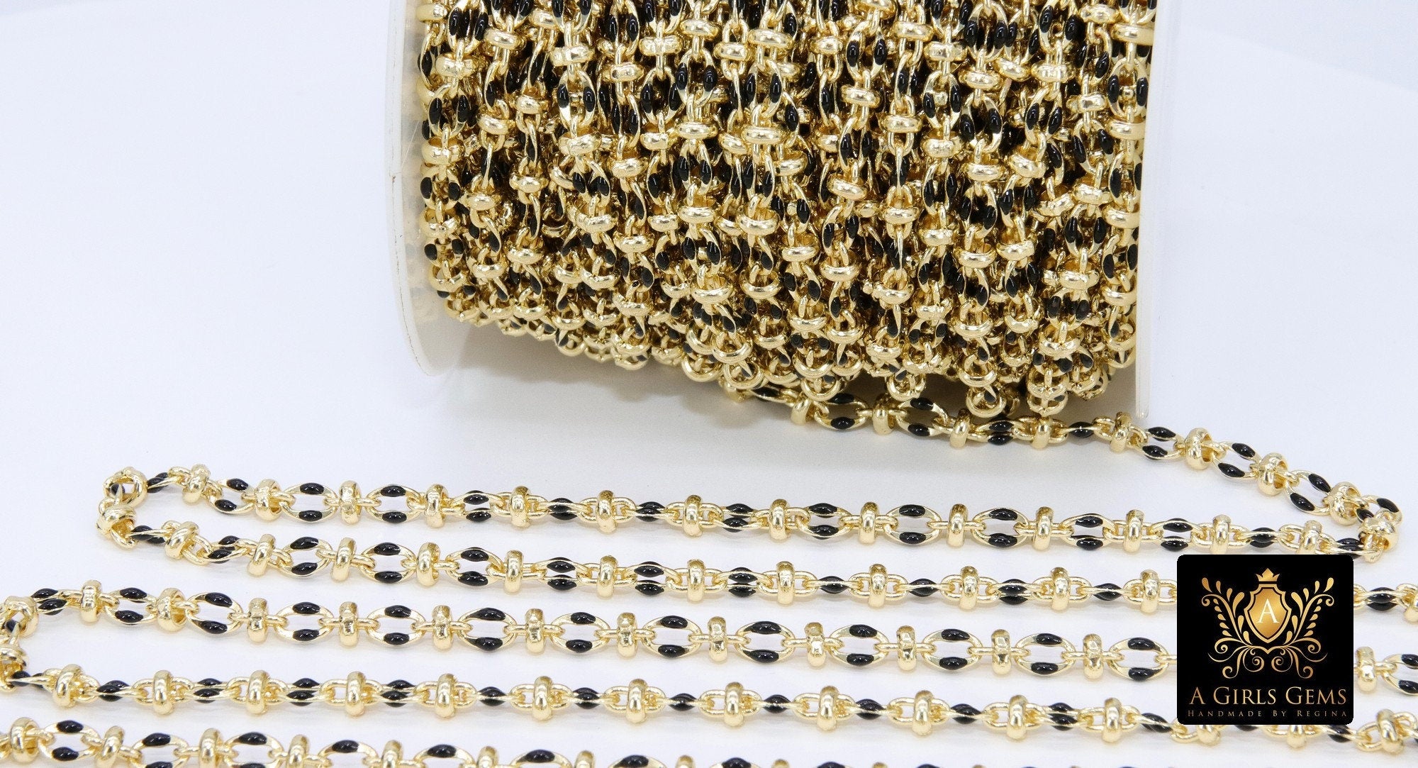 Dainty Beaded Satellite Chain in Black or White Enamel, Necklace Bracelet Chain, Unfinished Gold Plated Chains Soldered, Spirit or Minimalist Jewelry