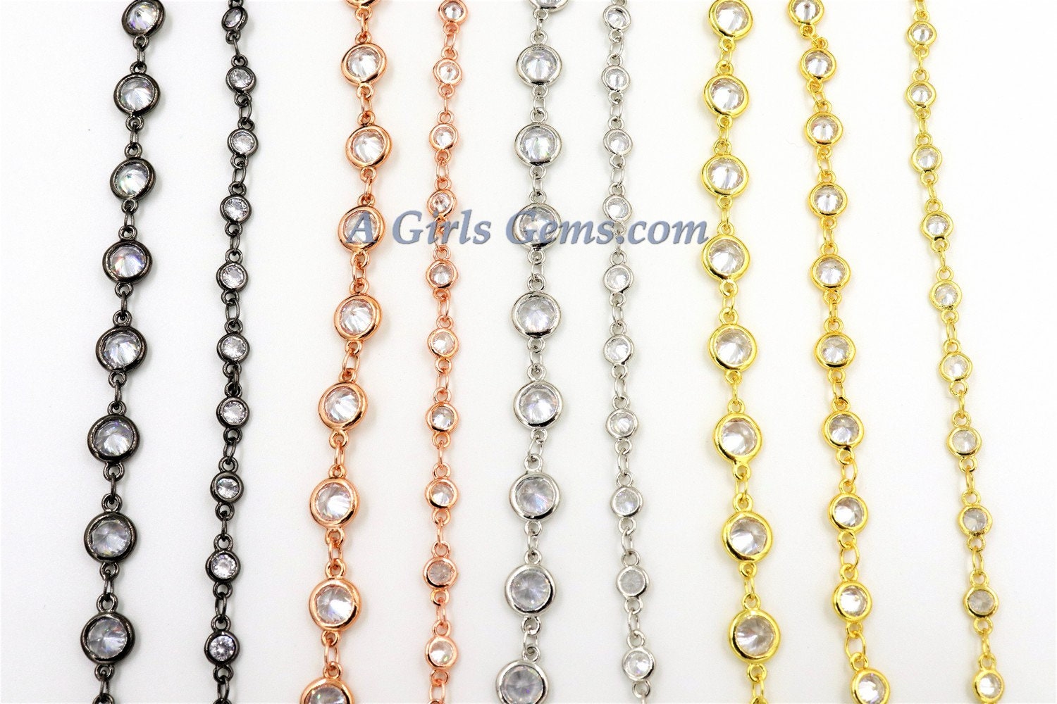 Silver CZ Chain By The Yard, 4 or 6 mm Genuine CZ Chain CH# 543, Rose Gold Cz Chains