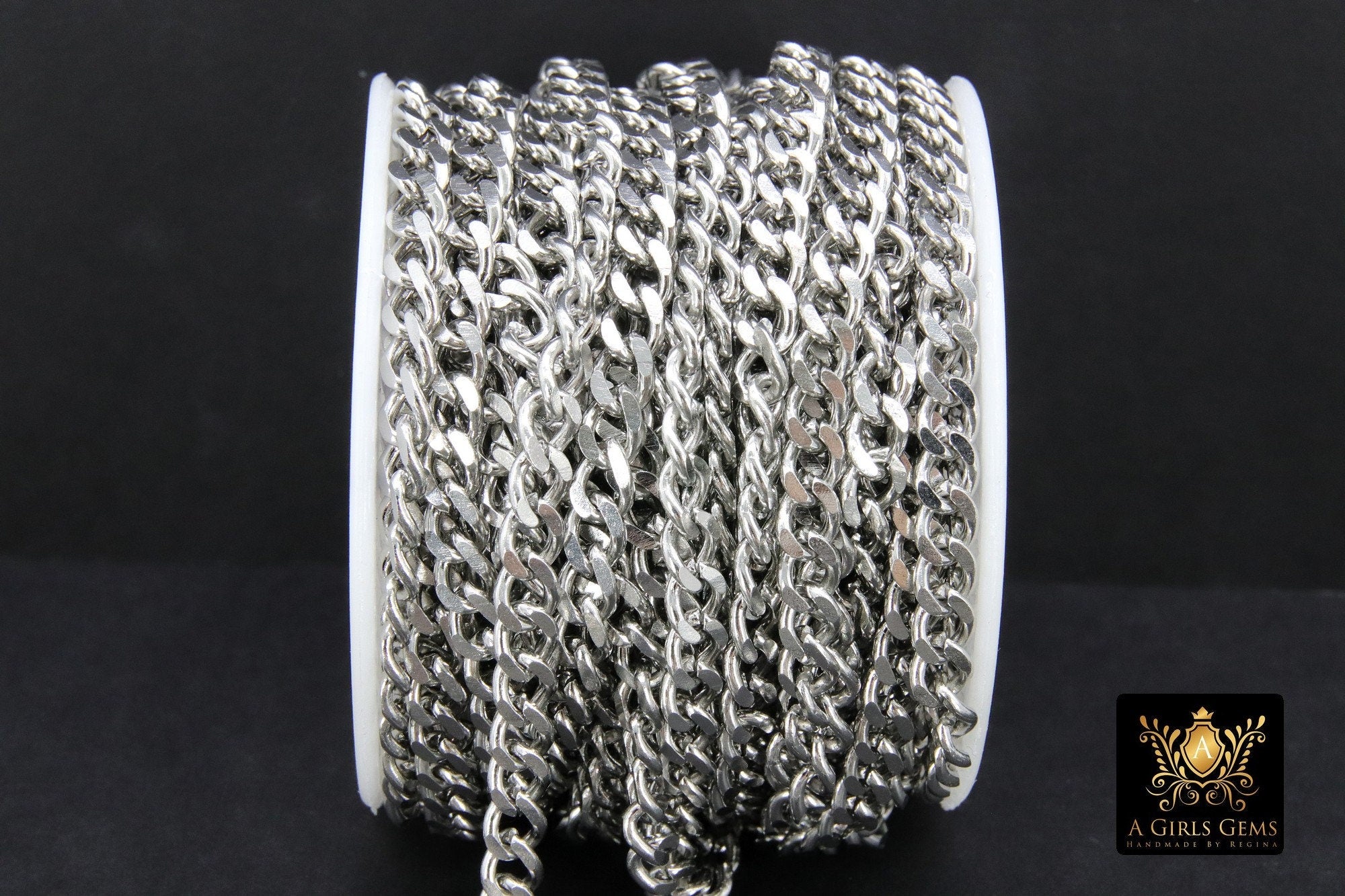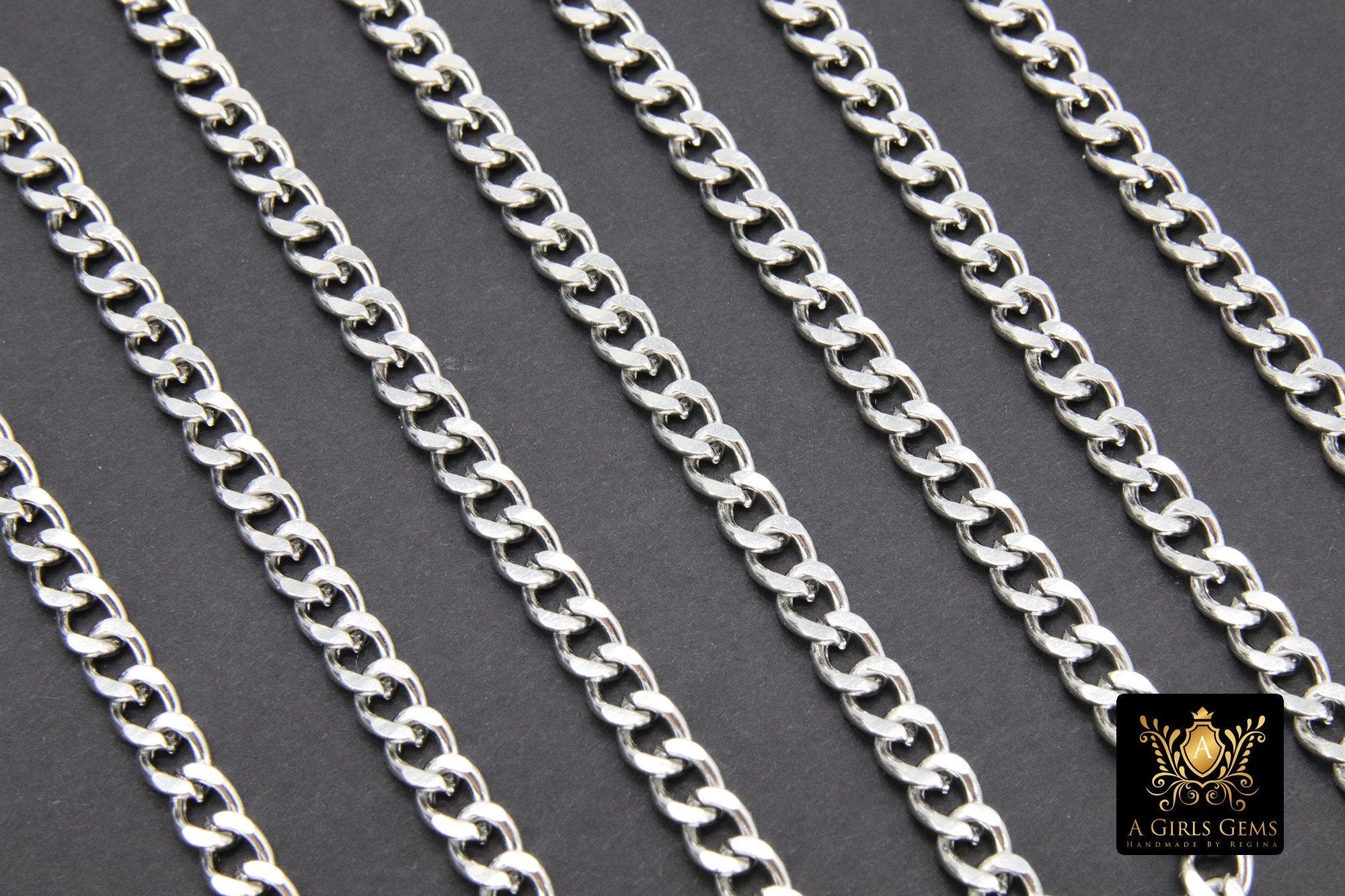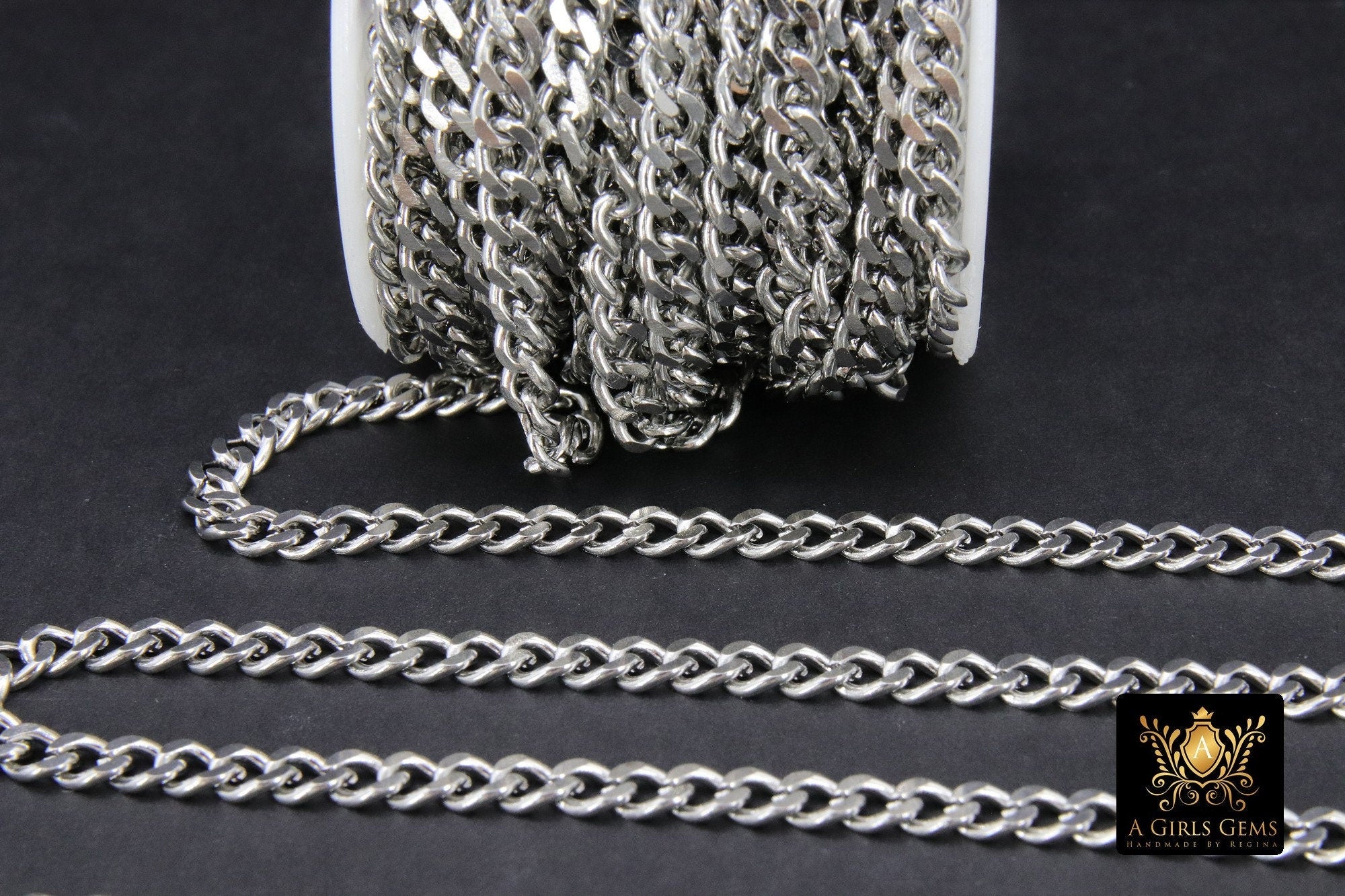 Stainless Steel Chain, 304 Silver Flat Dainty Curb Chains CH #254, 6 mm Unfinished Cable Necklace Chains