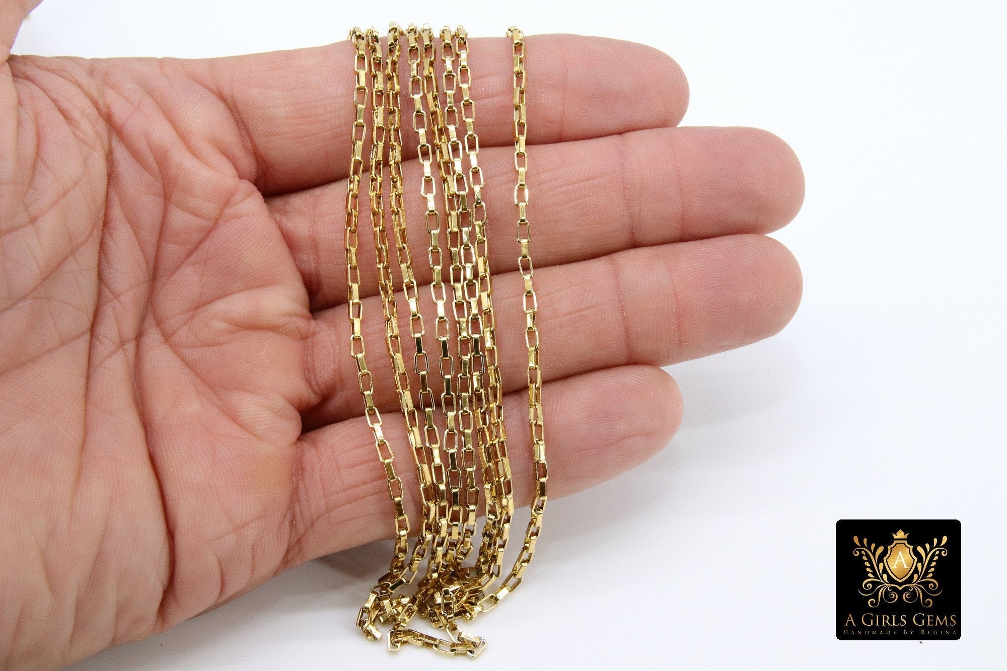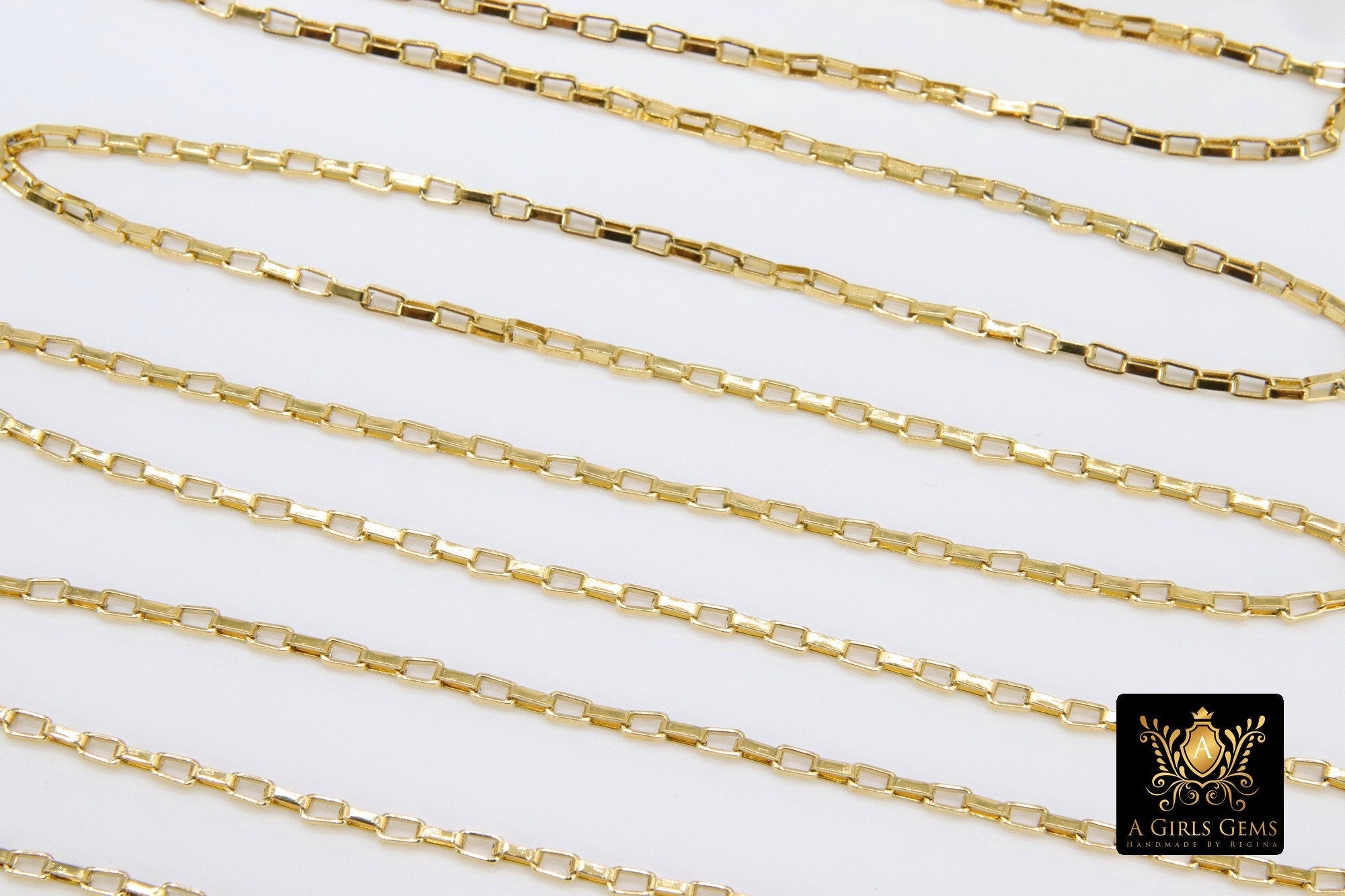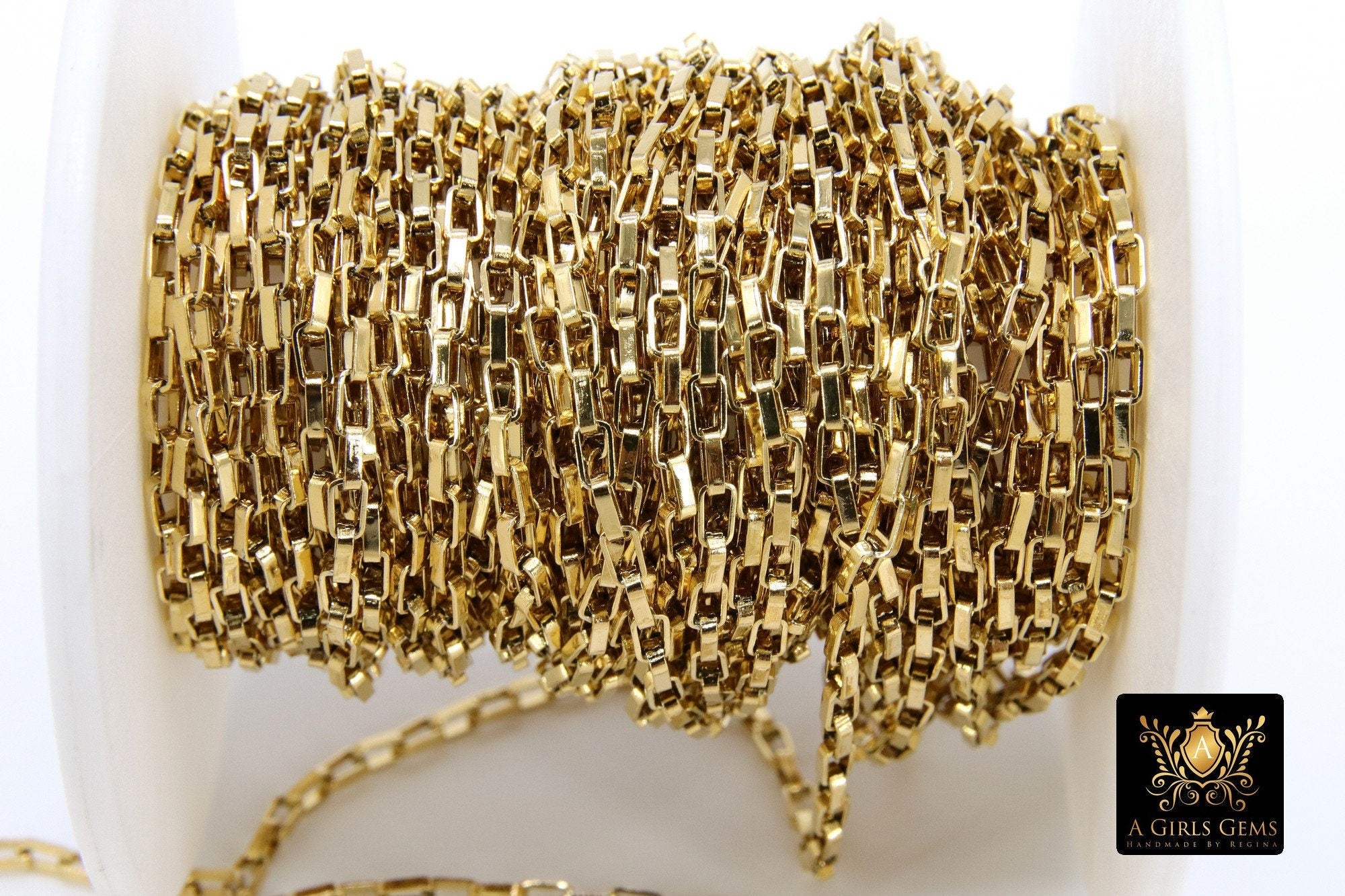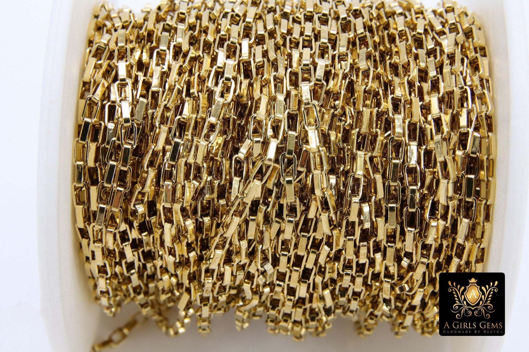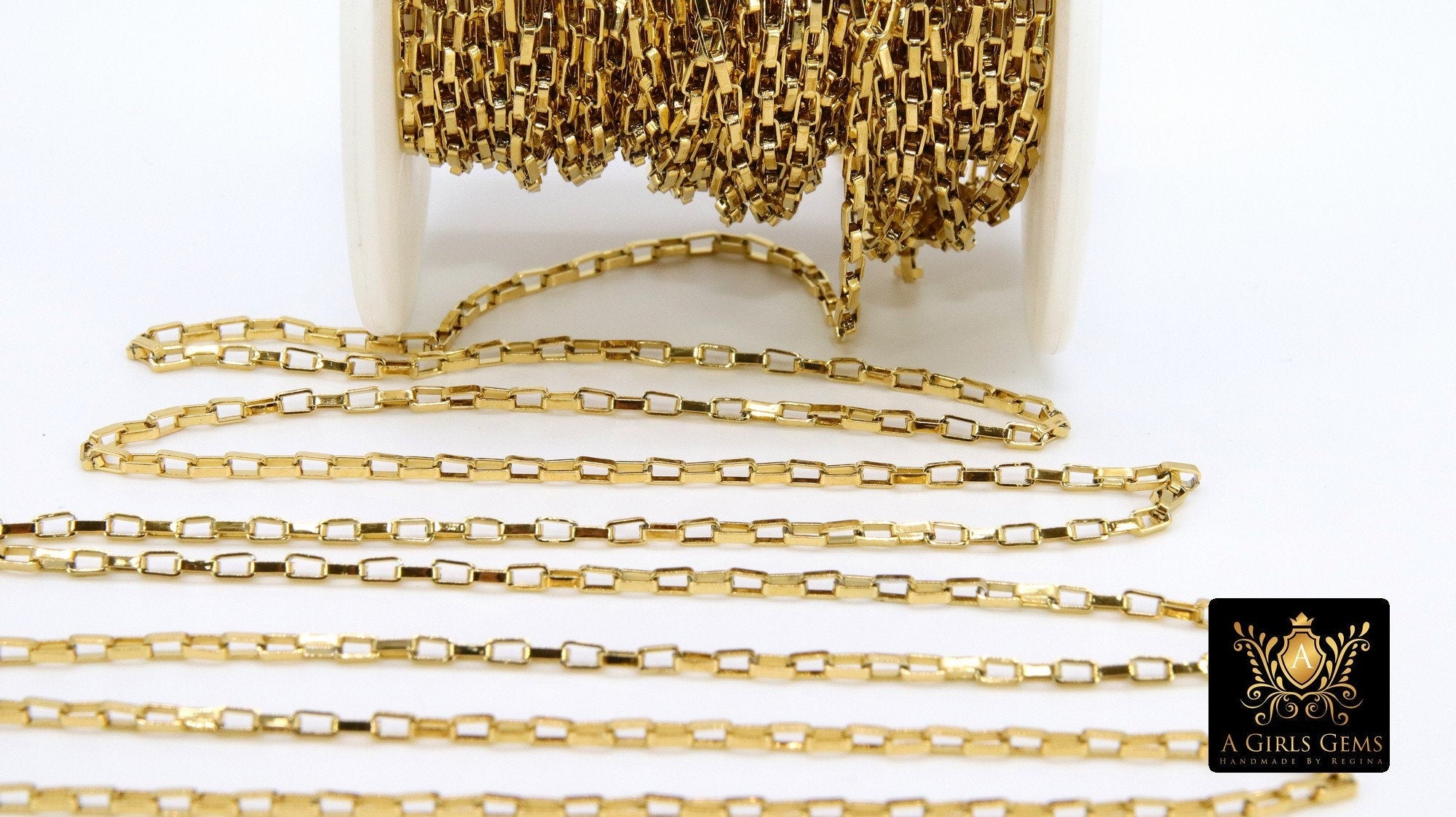 Stainless Steel Chain, Silver Steel 4 mm Rectangle Box Chains CH #137, Unfinished Gold