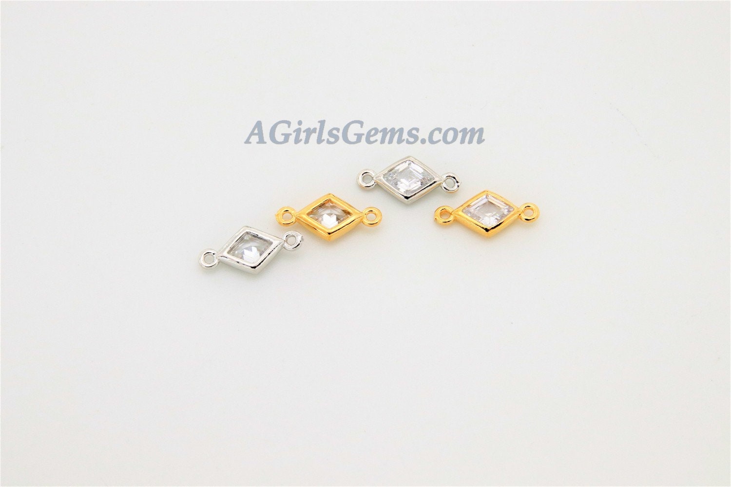 2 Pieces CZ Pave Diamond Shape Charms, 2 Pcs Rhodium Plated Cubic Zircon Pendant Tiny Diamond Earring Charms Gold or Silver Necklace CZ Beads AGG302