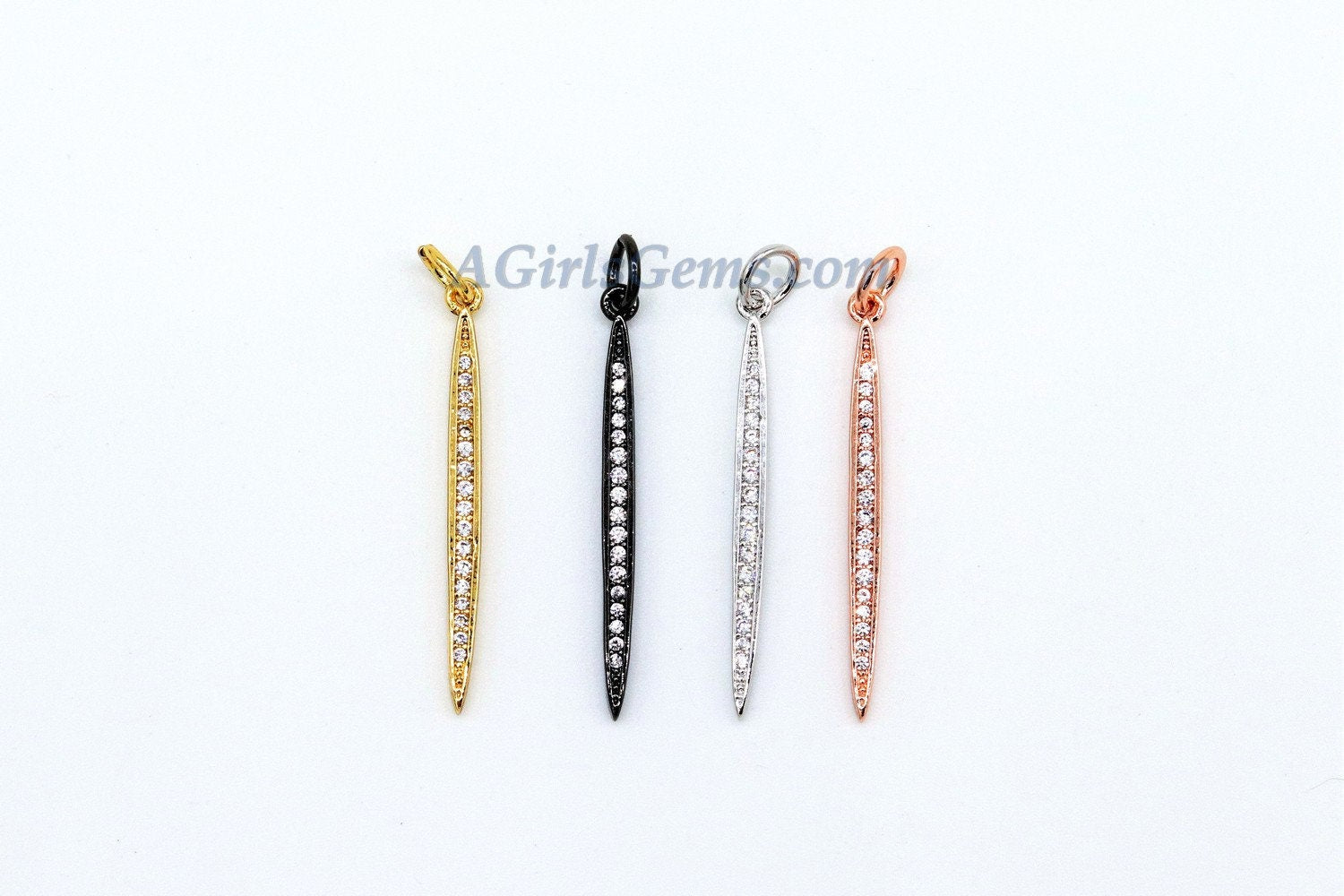 CZ Micro Pave Mini Spike Pendant, Minimalist Tiny Cz Needle Spike Charm Pendant, Dagger CZ Bar Charms 3 x 24 mm, *ALL CoLoRs* Bar Spike Point Pendant AGG302