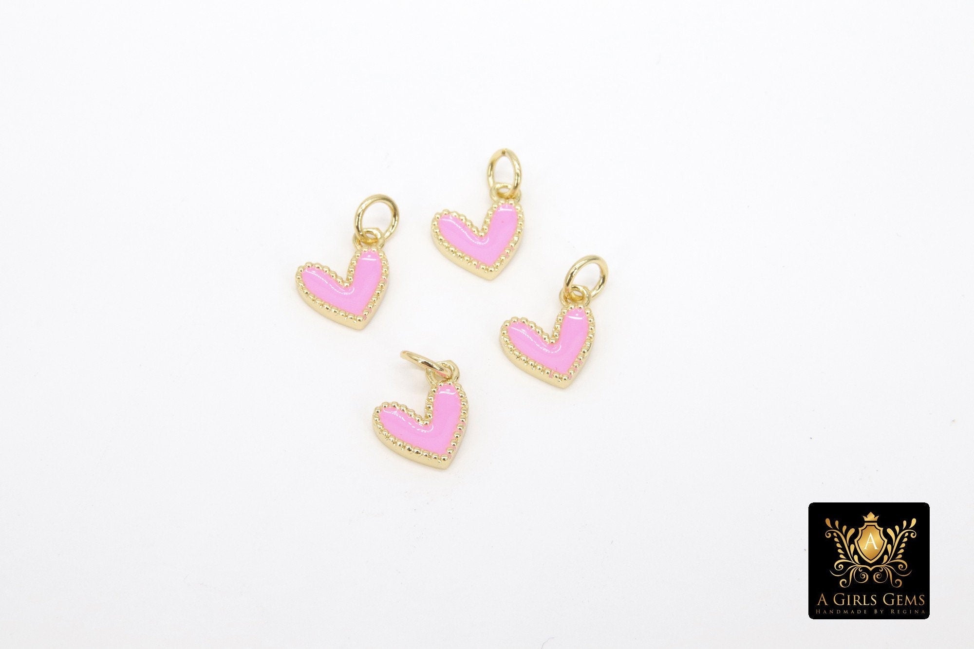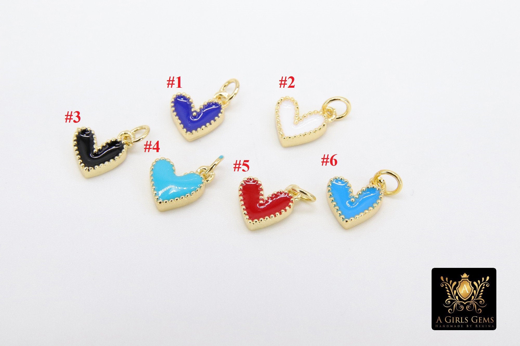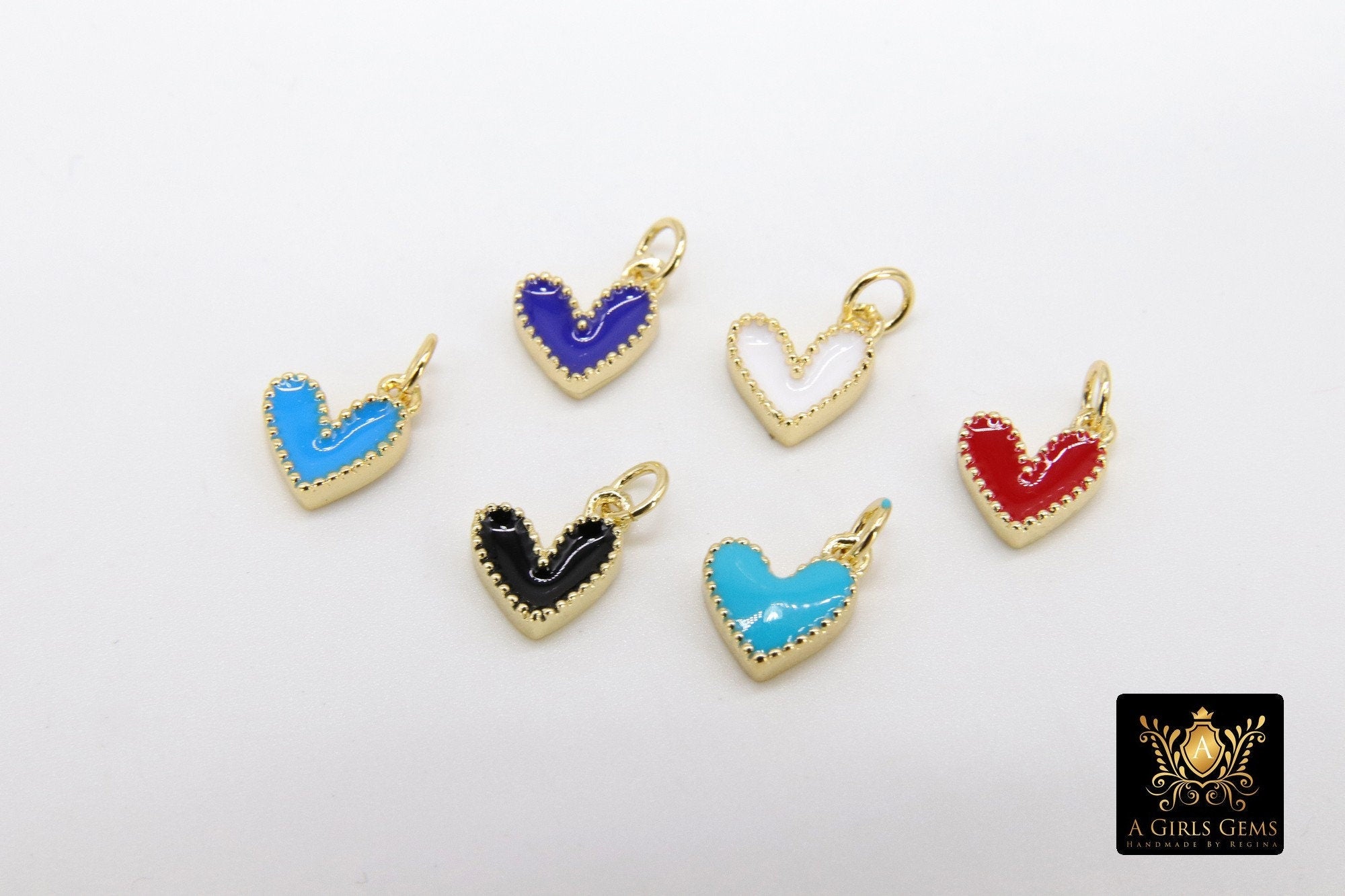 Tiny Gold Enamel Heart Charms, Turquoise Blue Black Red White Heart Charms # 84, Mini Jewelry Charms 8 x 9 mm
