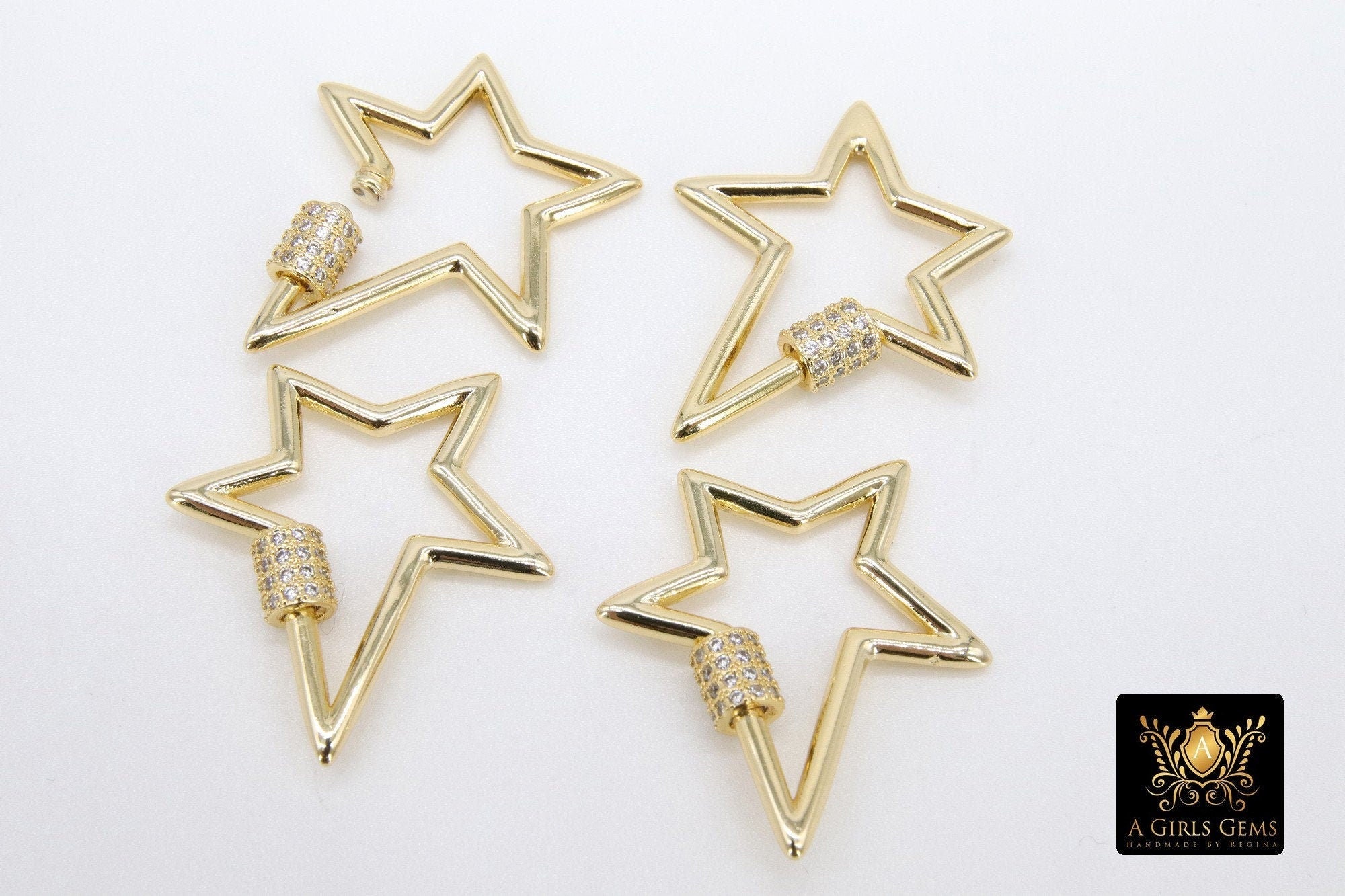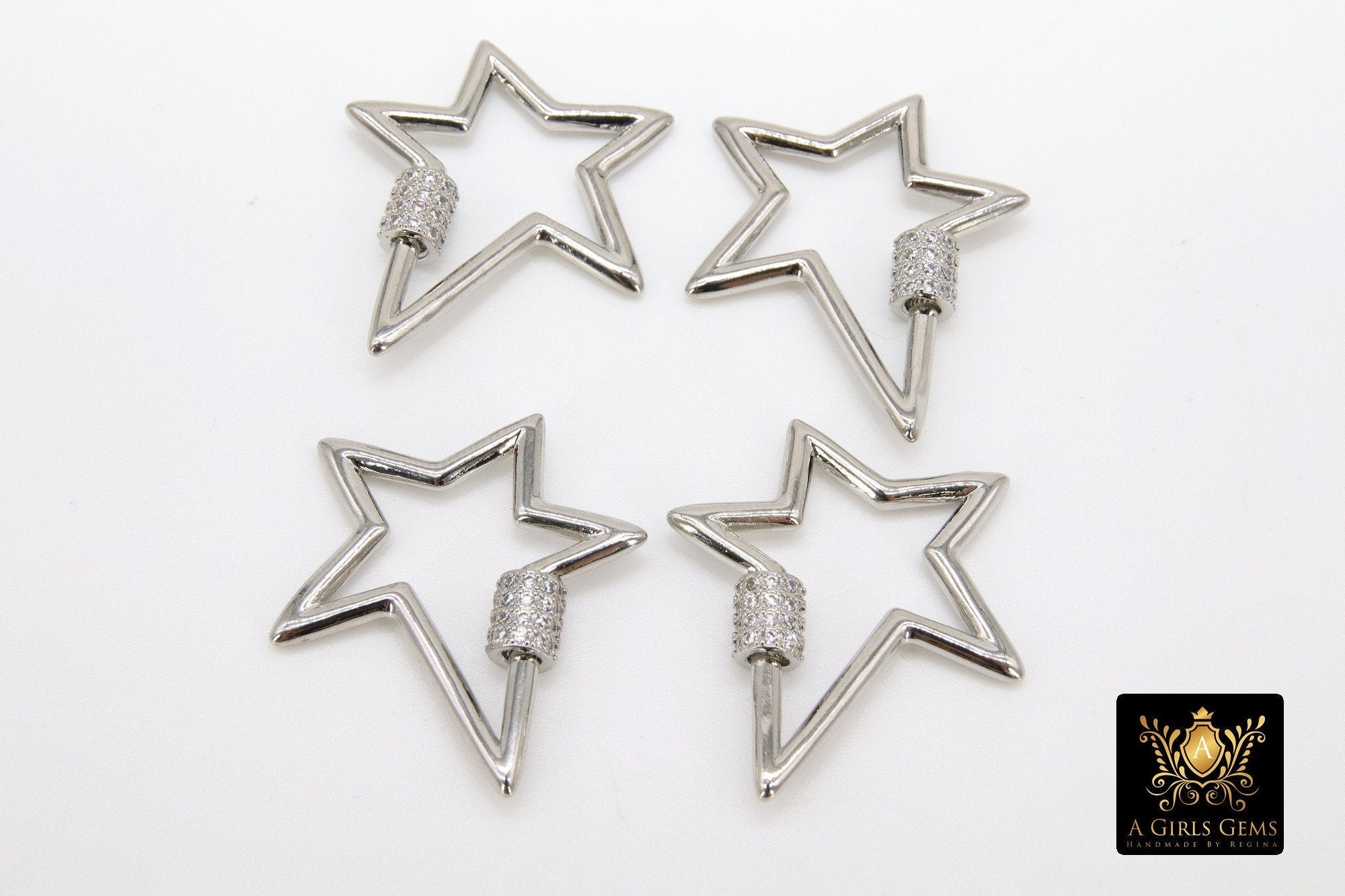 Carabiner Star Screw Clasps, Silver, Gold Large Cubic Zirconia Black Necklace Locks