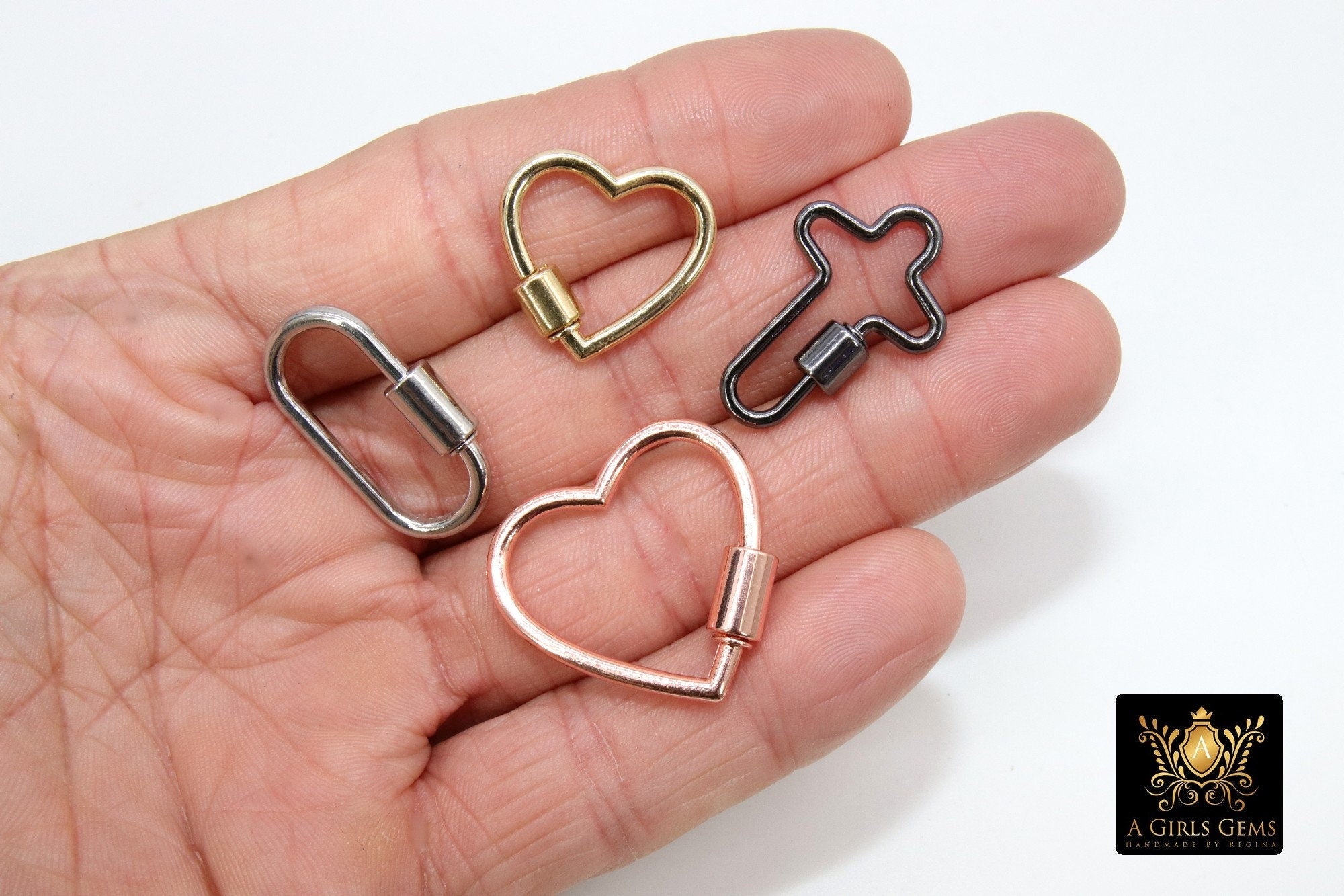 Gold Heart Screw Clasps, Small Silver Connector Claw #2659, Black Necklace and Bracelet Links