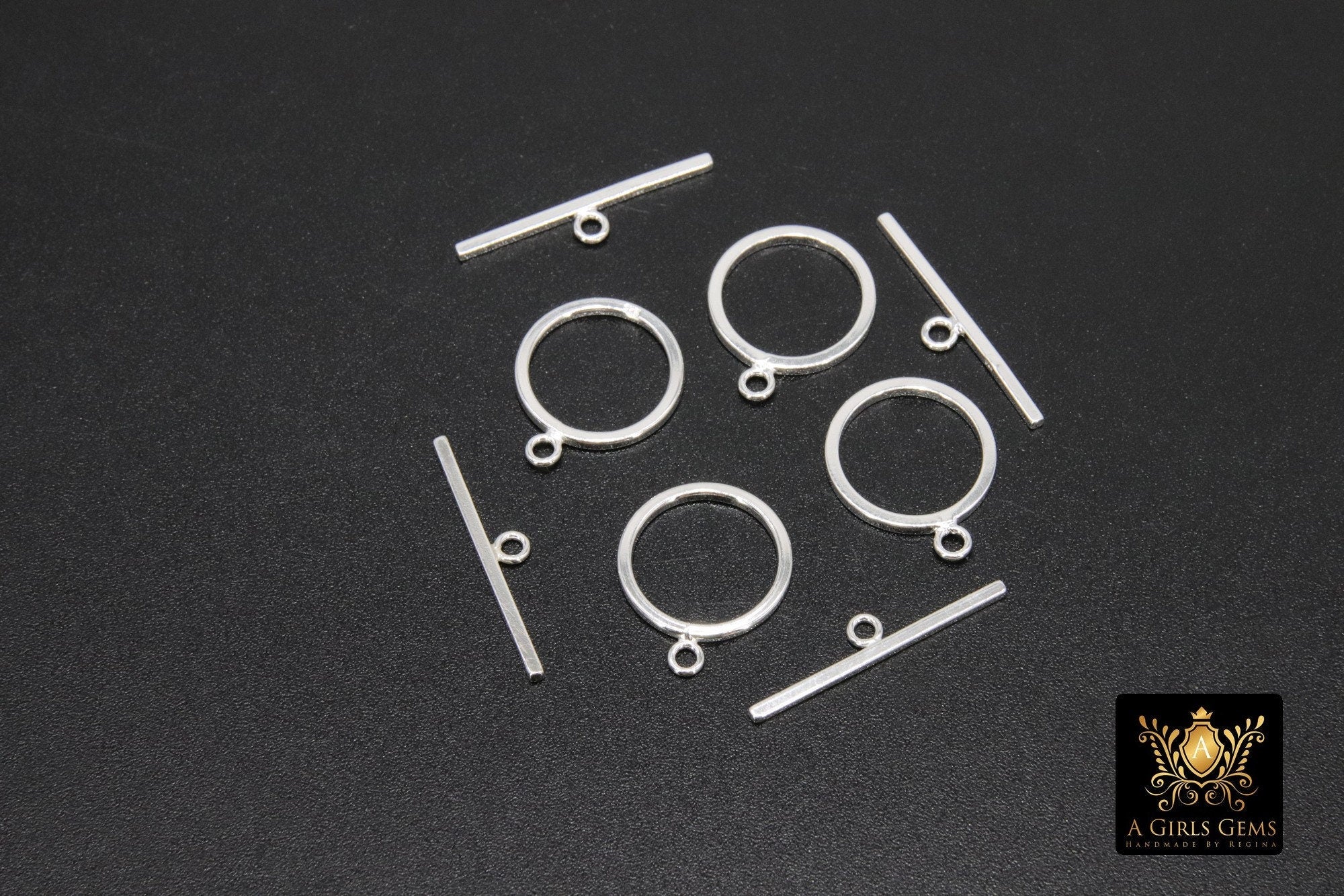 Large 925 Sterling Silver Toggle Clasp Set, 17 x 14 mm Toggle Ring #2662, 24 mm Flat T Bar Stamped 925 Clasps