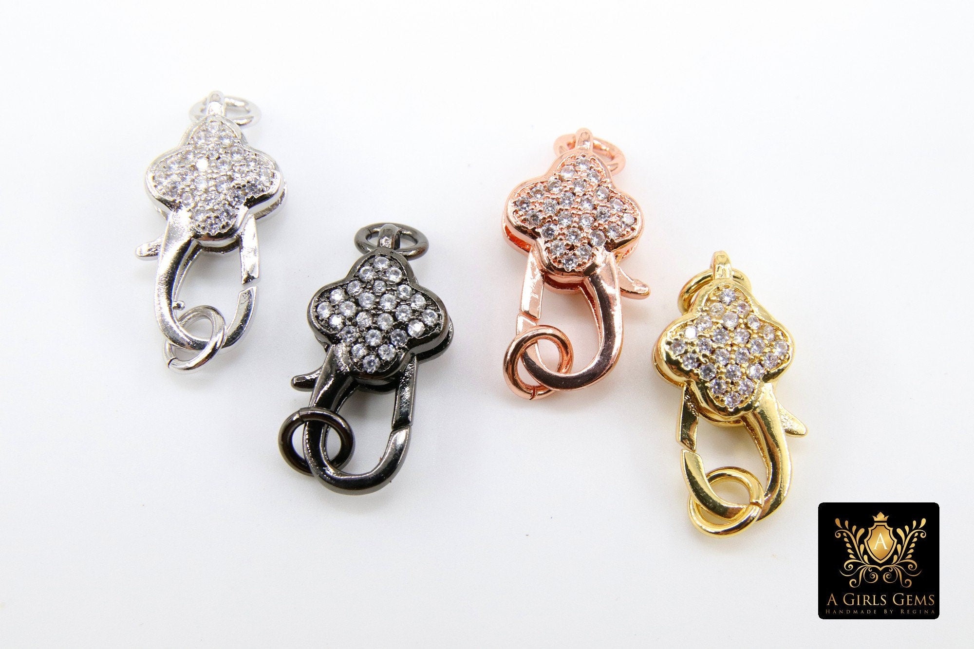 Clear CZ Pave Lobster Claw Clasp, 18 K Gold/Rose/Silver/Gunmetal Black Rhodium Plated, Diamond Pave Buckle Link Connector
