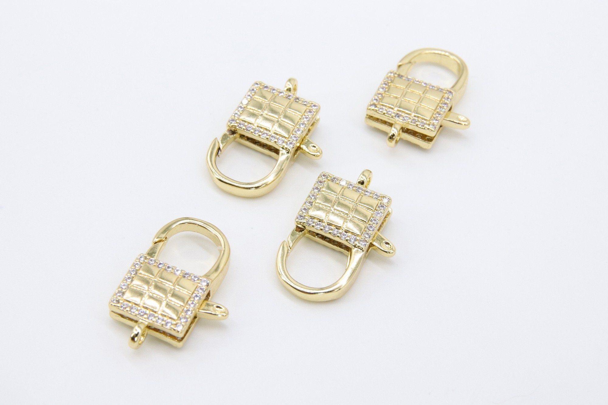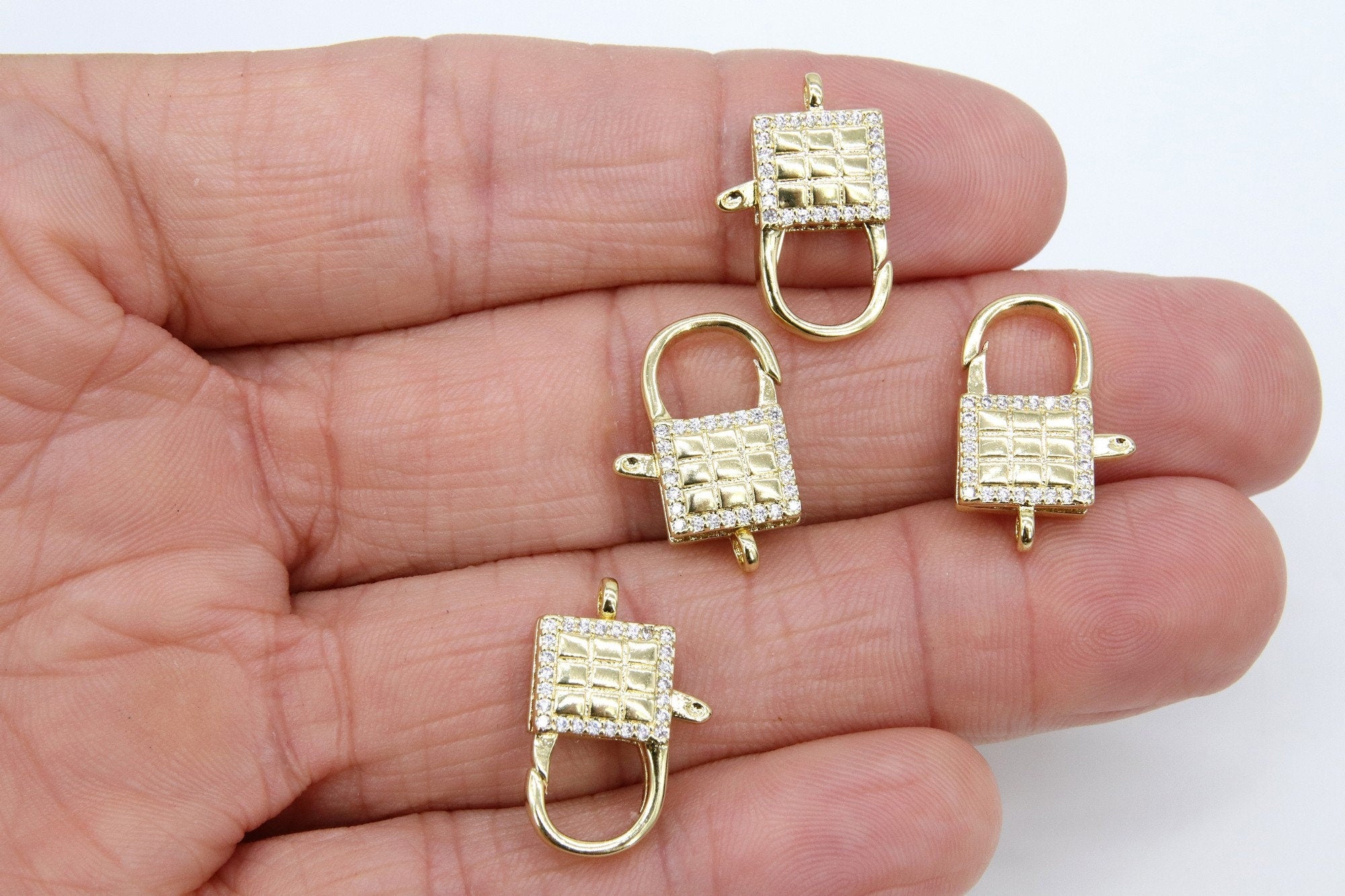 CZ Pave Mini Padlock Lobster Clasp, Gold Lock Clip #2344, Necklace Bracelet Keychain Claw Jewelry Findings