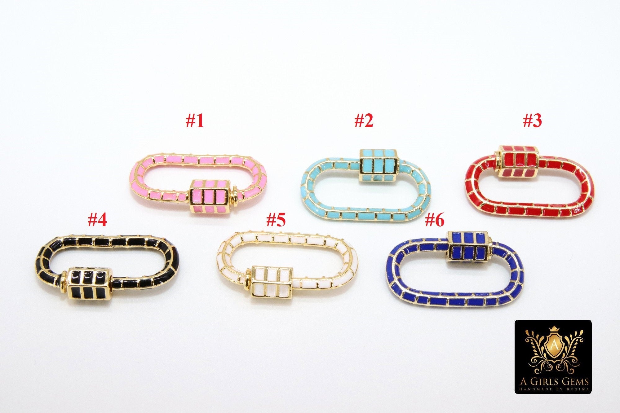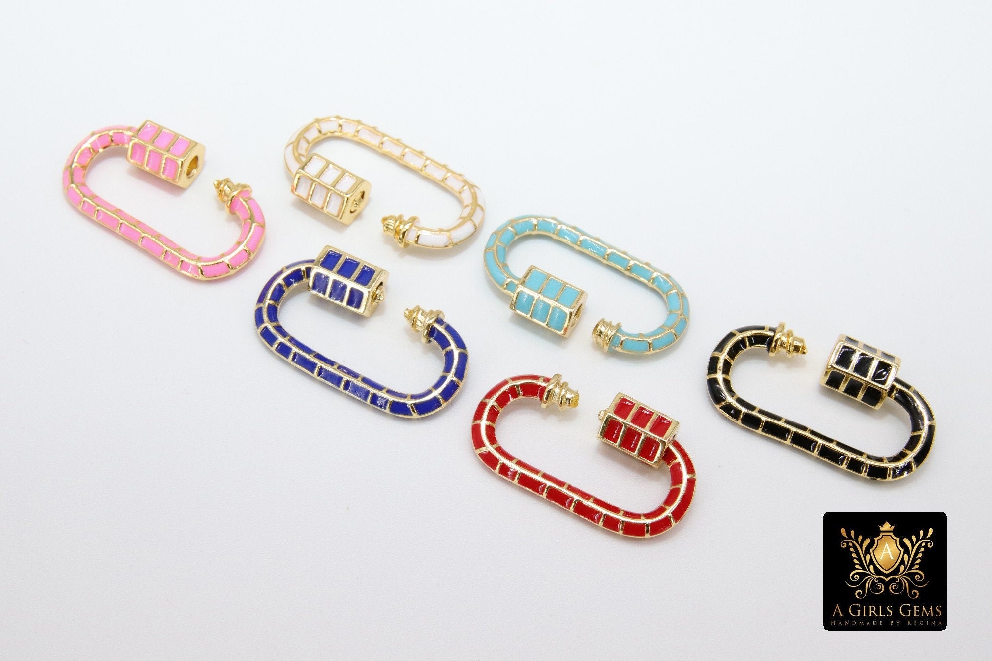 Gold Oval Screw Clasps, Large Enamel Honeycomb Pattern Connector #2341, White Black Aqua Blue Pink Red Findings