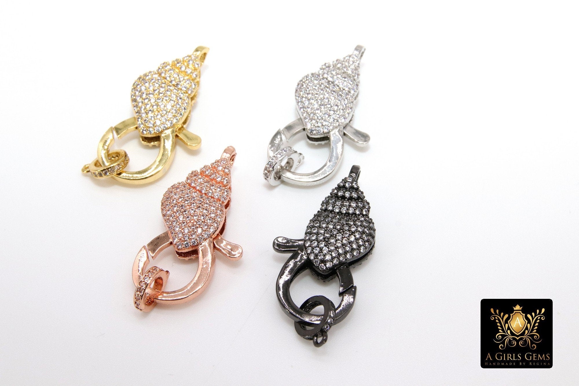 Large Lobster Clasp, CZ Pave Sea Shell Claws, Diamond Pave Conch Beach Findings