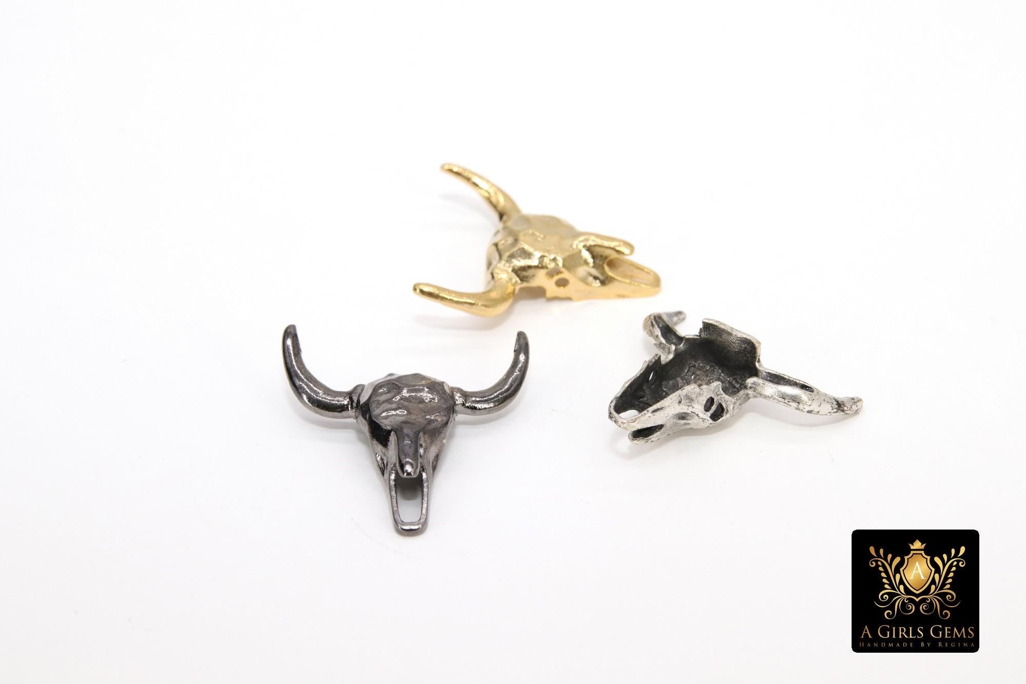 Cow Skull CZ Micro Pave Gold Plated Bull Skull Bead Boho Cubic Zirconia Ox Longhorn Skull Cowboy Supplies Bracelet Bead Bull Skull