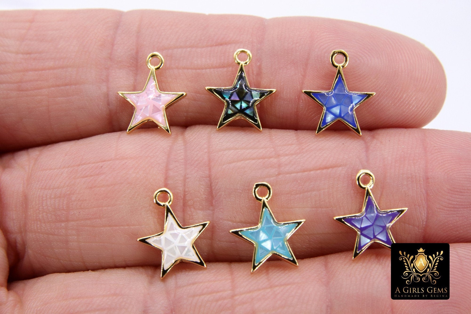 Gold Shell Star Charms, 13 mm Pink, Aqua, Purple, White, Black or Blue Starburst