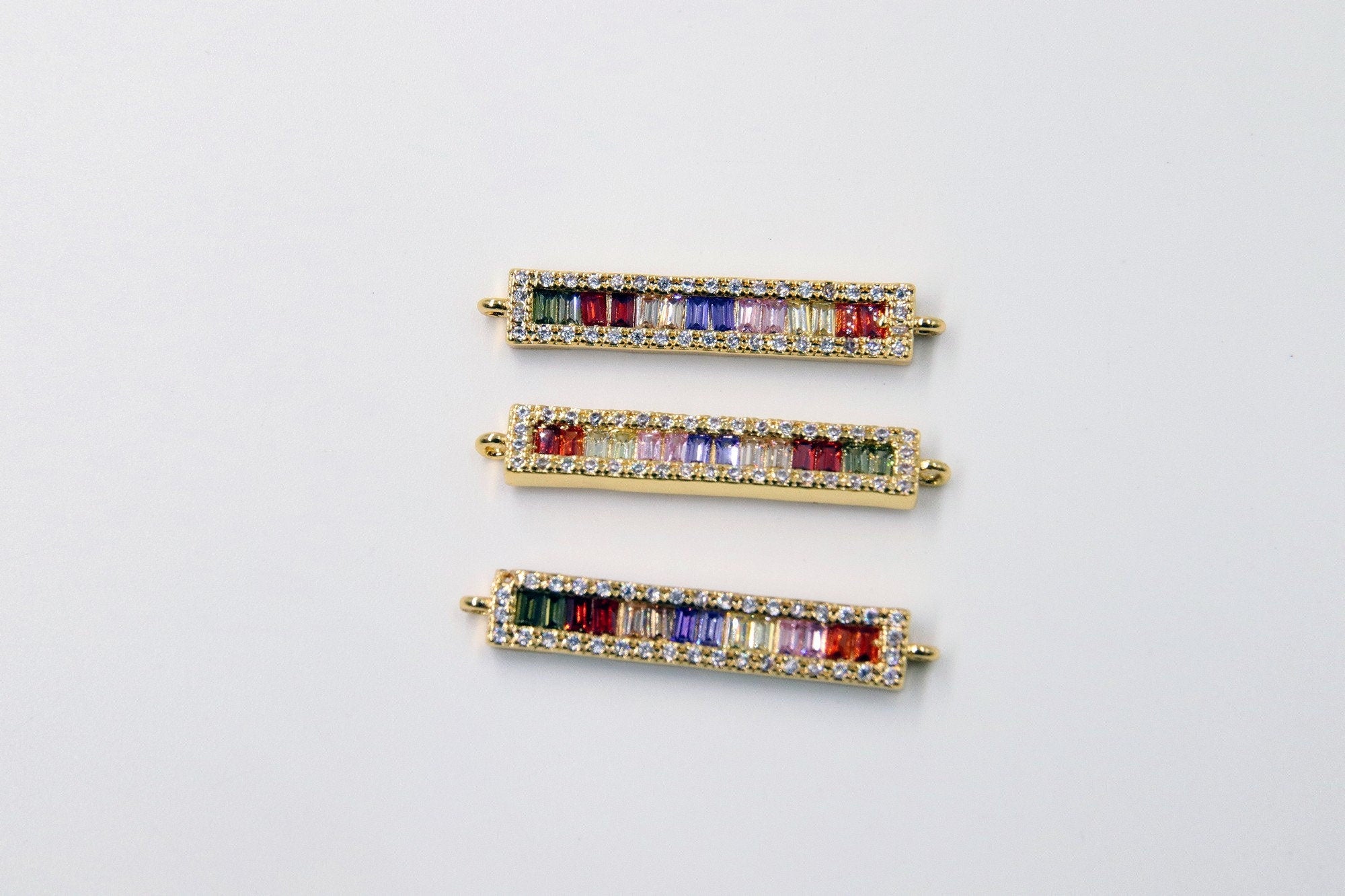 Long Bar Connector, CZ Micro Pave Gold Rainbow Bar Stick, LGBT Pride Minimalist Curved Links