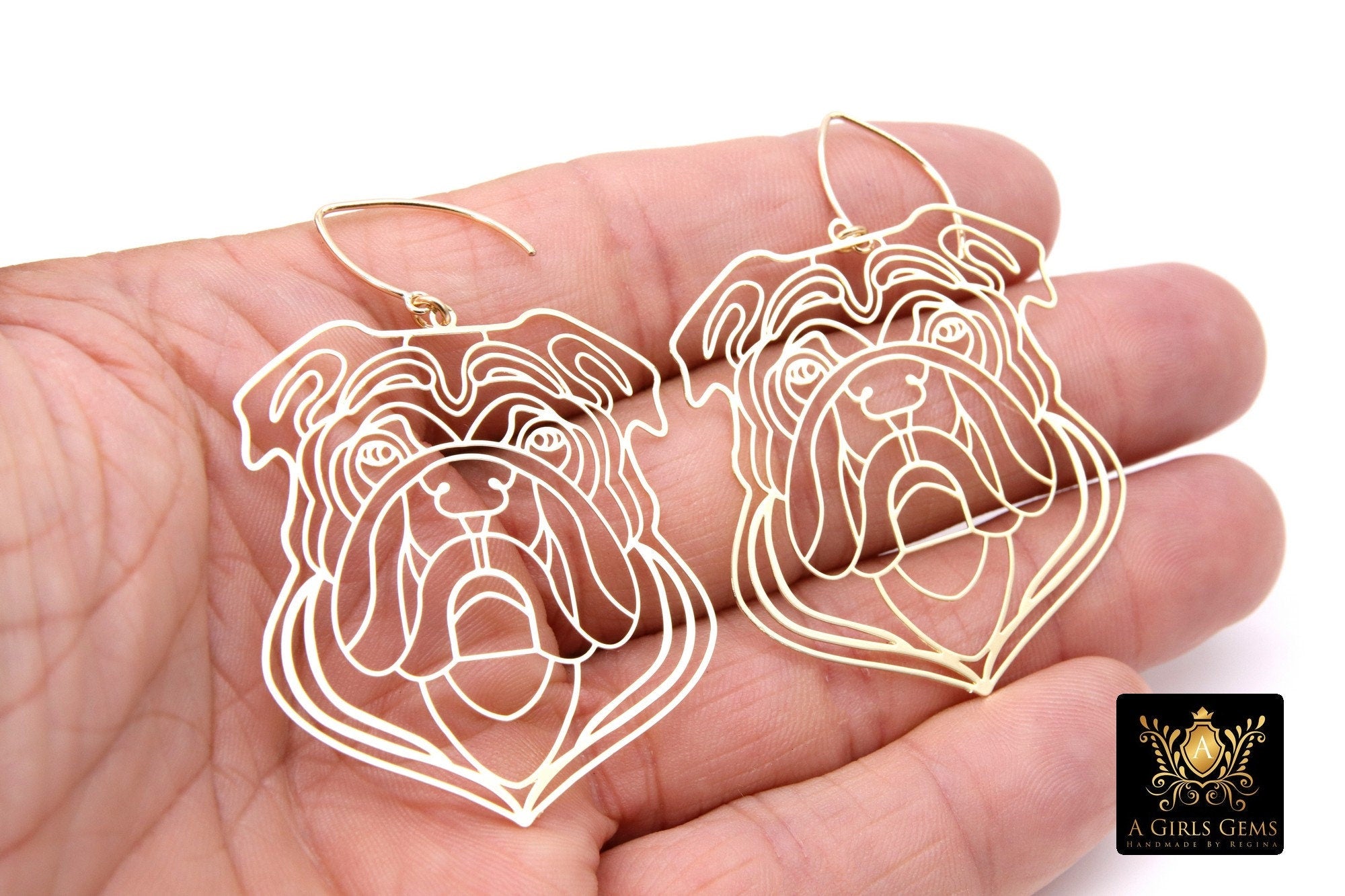These earrings have Genuine 14 K Gold Filled V Ear Wire Hooks for those who can't wear plated ear wires. Come with a gold plated dog charms; super lightweight. Gold Filled ear wires are Hypo allergenic, lead free and nickel free. Message us if you would like to customize your earrings.