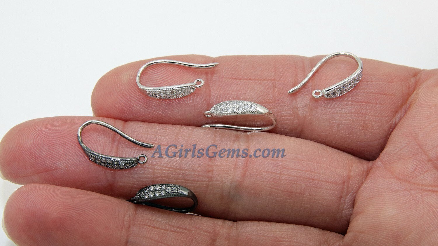 CZ Earring Findings, CZ Ear Hooks, Earwires, Open Loop Earwire, Bridal CZ Earrings *Gifts* - Cubic Zirconia Jewelry Finding - 2 pc/1 Pair