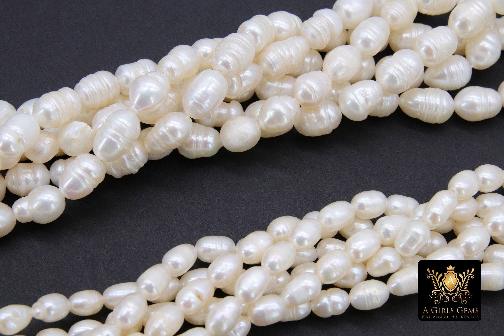 Genuine Pearl Bead Strands, 6 mm 12 mm White Baroque Pearl Beads BS #295, Oval Freshwater Rice Pearl