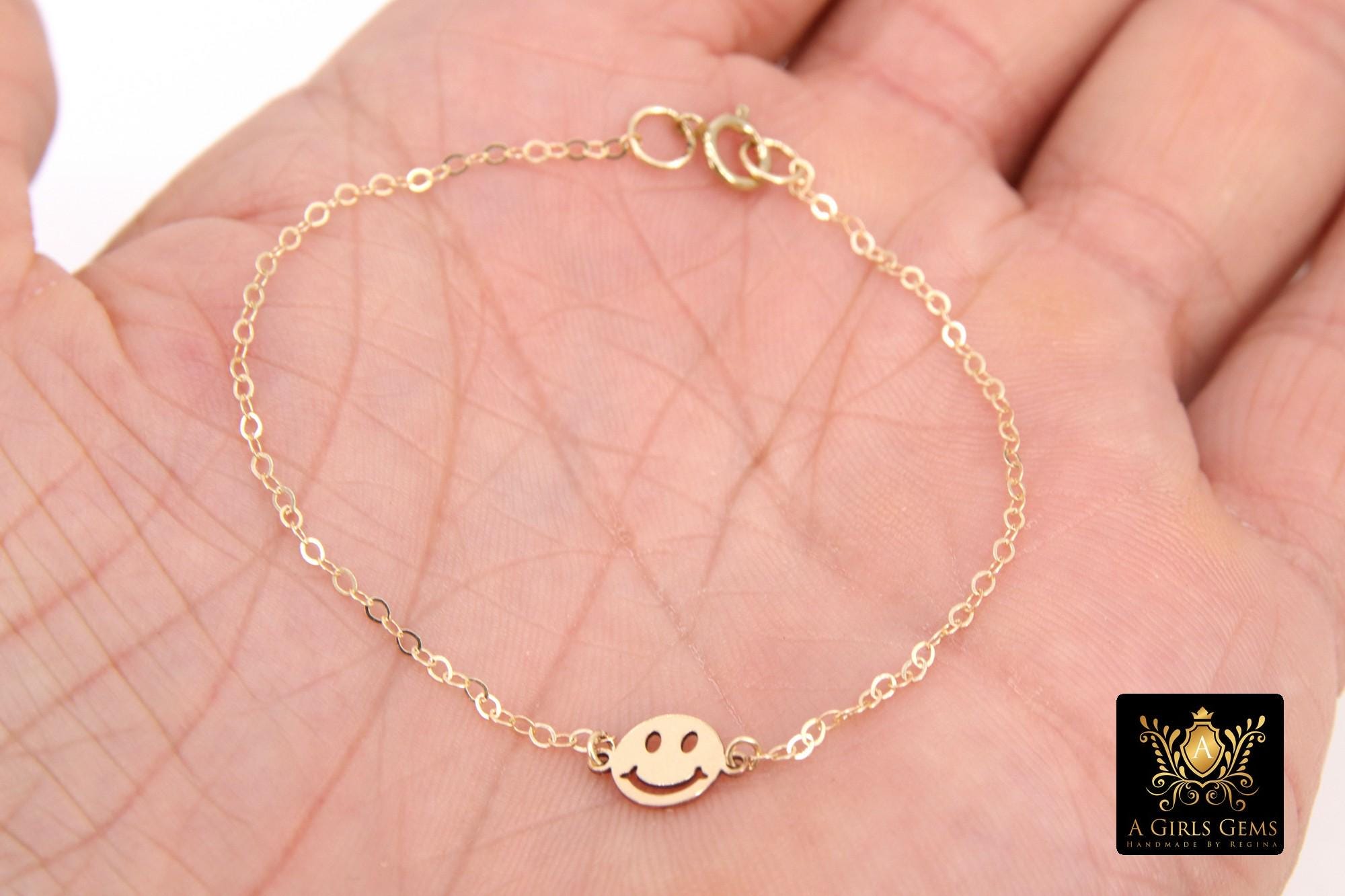 14 K Gold Filled Smiley Face Bracelet, 925 Sterling Silver Happy Face #2626, Everyday Chain Jewelry