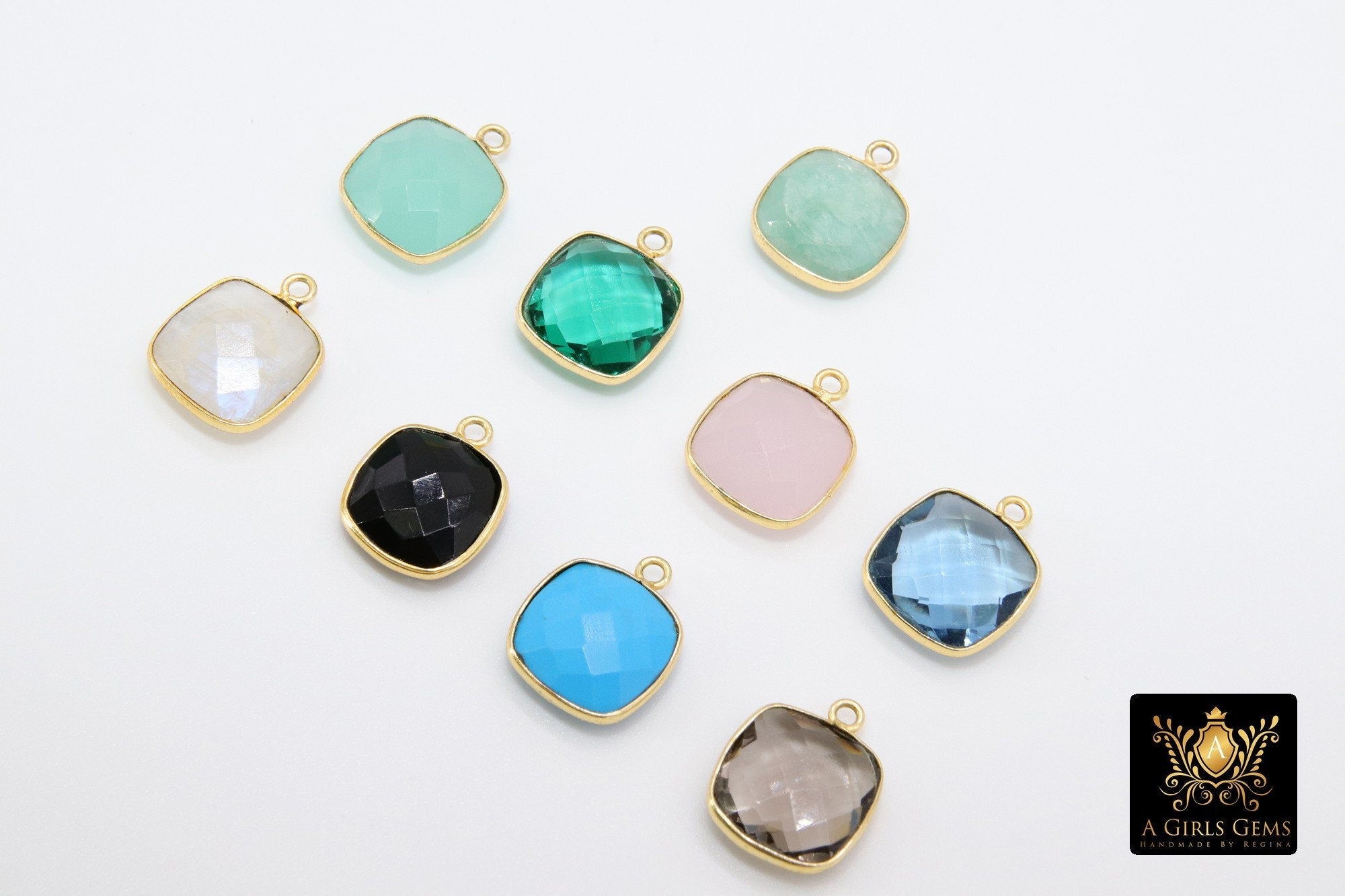 Square Gemstone Charms, 12 mm Gold Gemstone Charms # 2994, Sterling Silver Gold Plated Birthstone Pendants