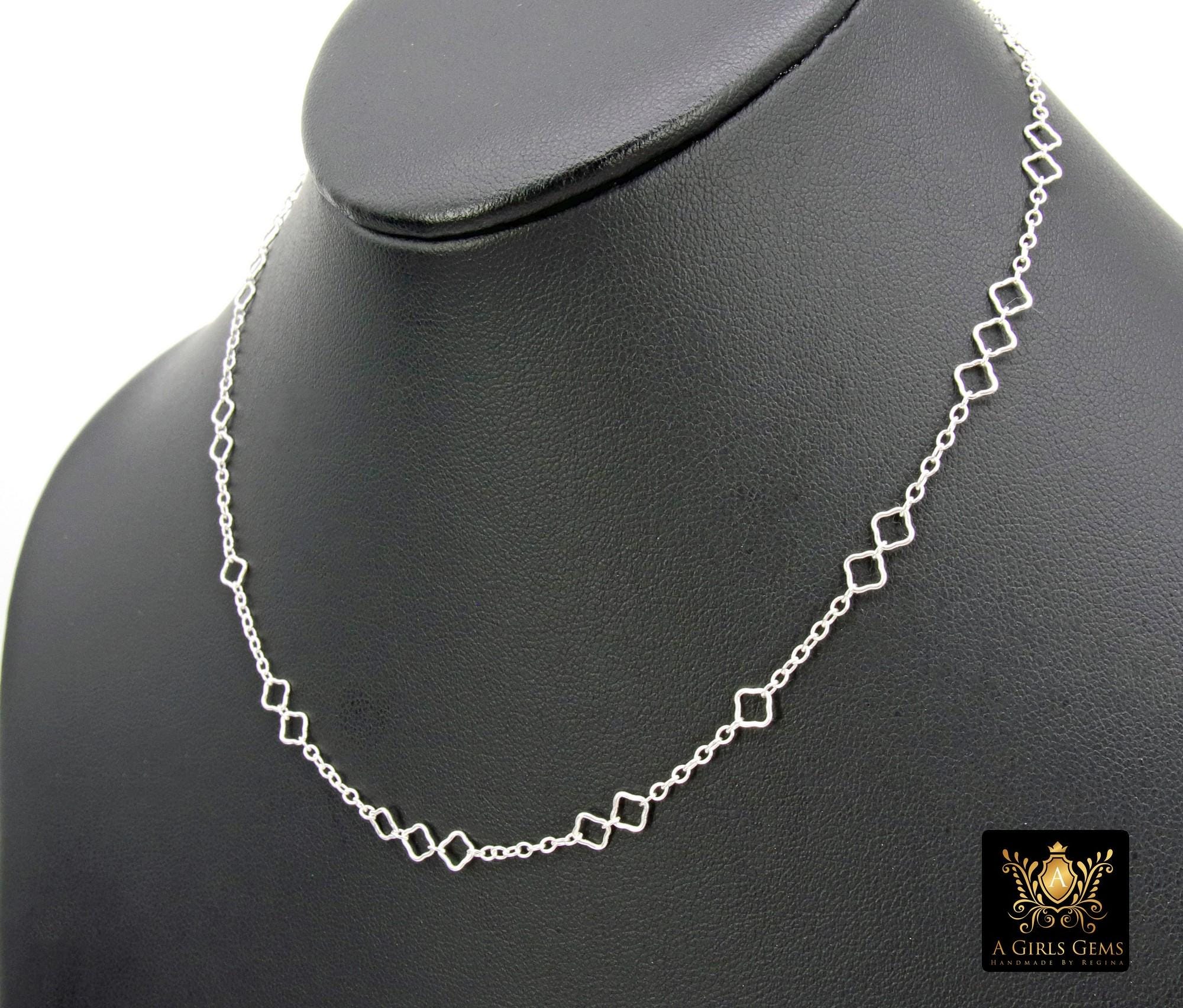 14 K Gold Filled Clover Chain Necklace, 925 Sterling Silver Long Short Quatrefoil Link Necklace, Stamped 14/20 or 925