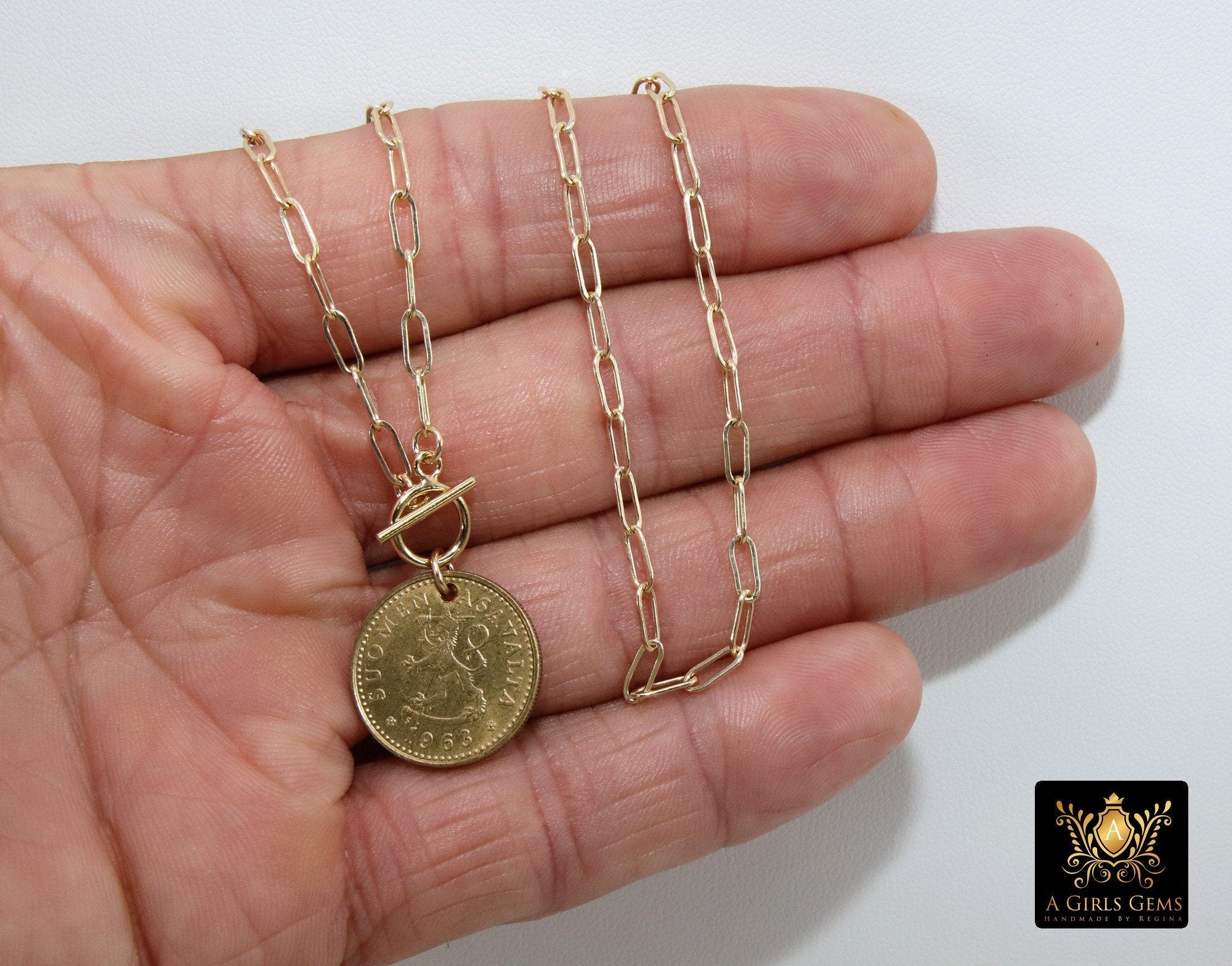This necklace is on our 14 K Gold Filled Designer Rectangle Oval Drawn Chains, ***NOT plated *** will last a lifetime. Includes a 14 K Gold Filled Toggle. Choose your World Coin Selection. Our most popular lengths are below. If you need a different length, please message us with any questions.