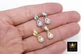 CZ Pave Gold Pinch Bails, 2 Pcs Silver Teardrop, Ice Pick Copper Bails #591