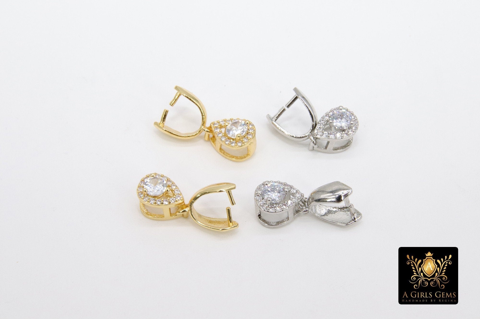 CZ Micro Pave Pinch Bails, Silver or Gold Plated Pendant Ice Pick Bails For Pendants or Charms