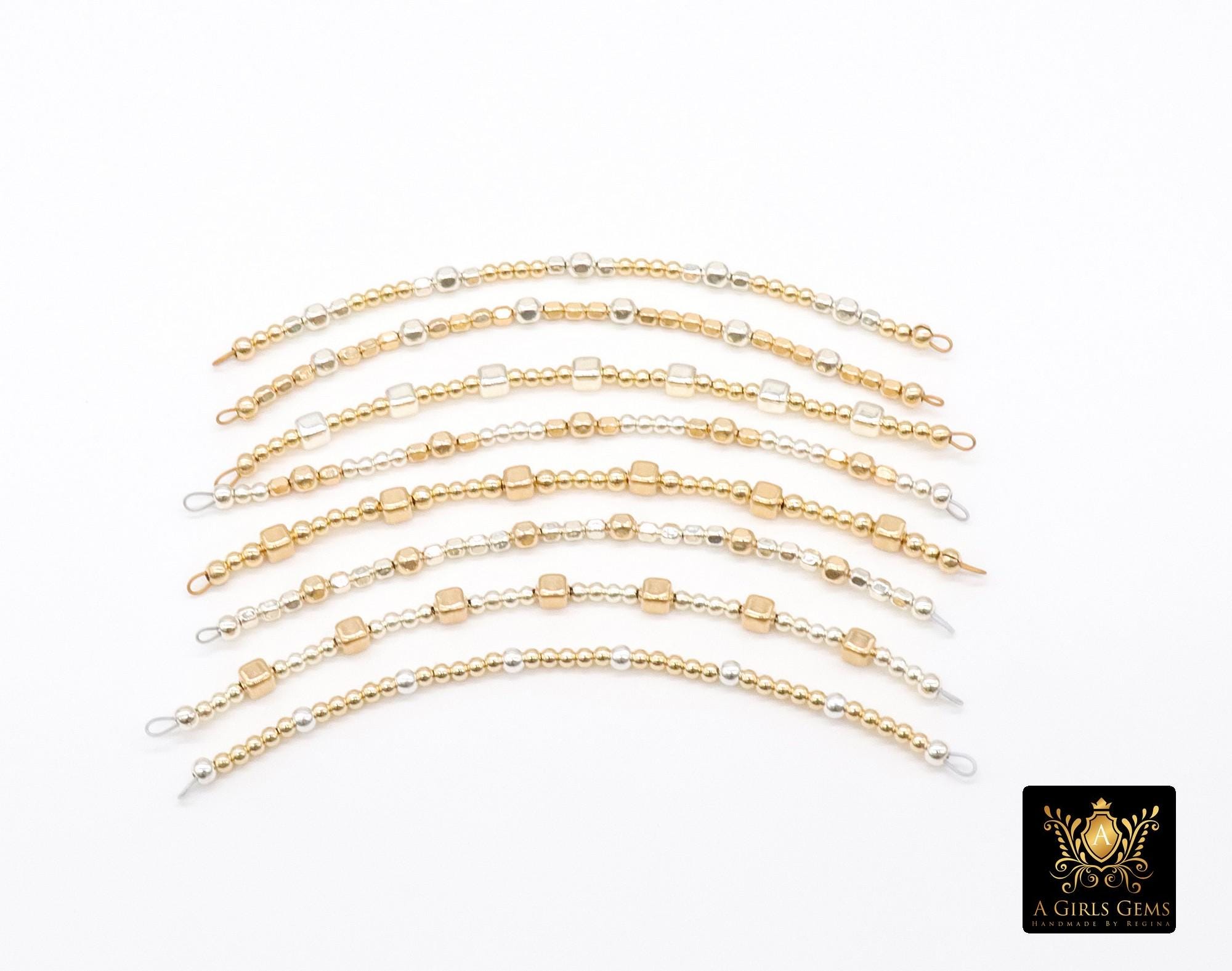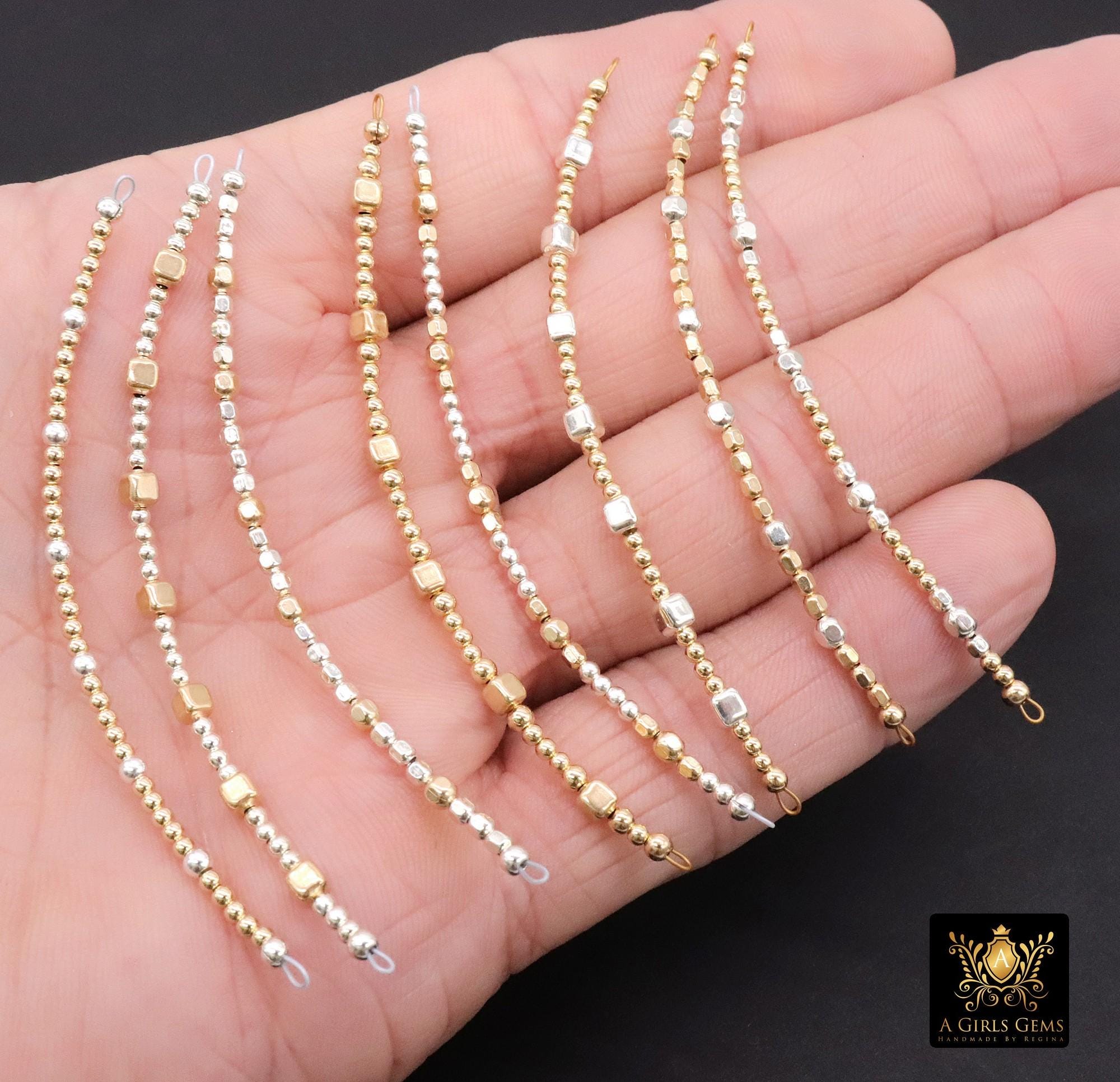 Genuine Permanent Jewelry 14 K Gold Filled or 925 Sterling Silver Connector Square Cube Bars, Faceted Nugget Beaded Mixed Metals, Long Beaded Link Findings, Wire Wrapped, Mothers Day Gifts, Husband Wife Gifts For Her or Him