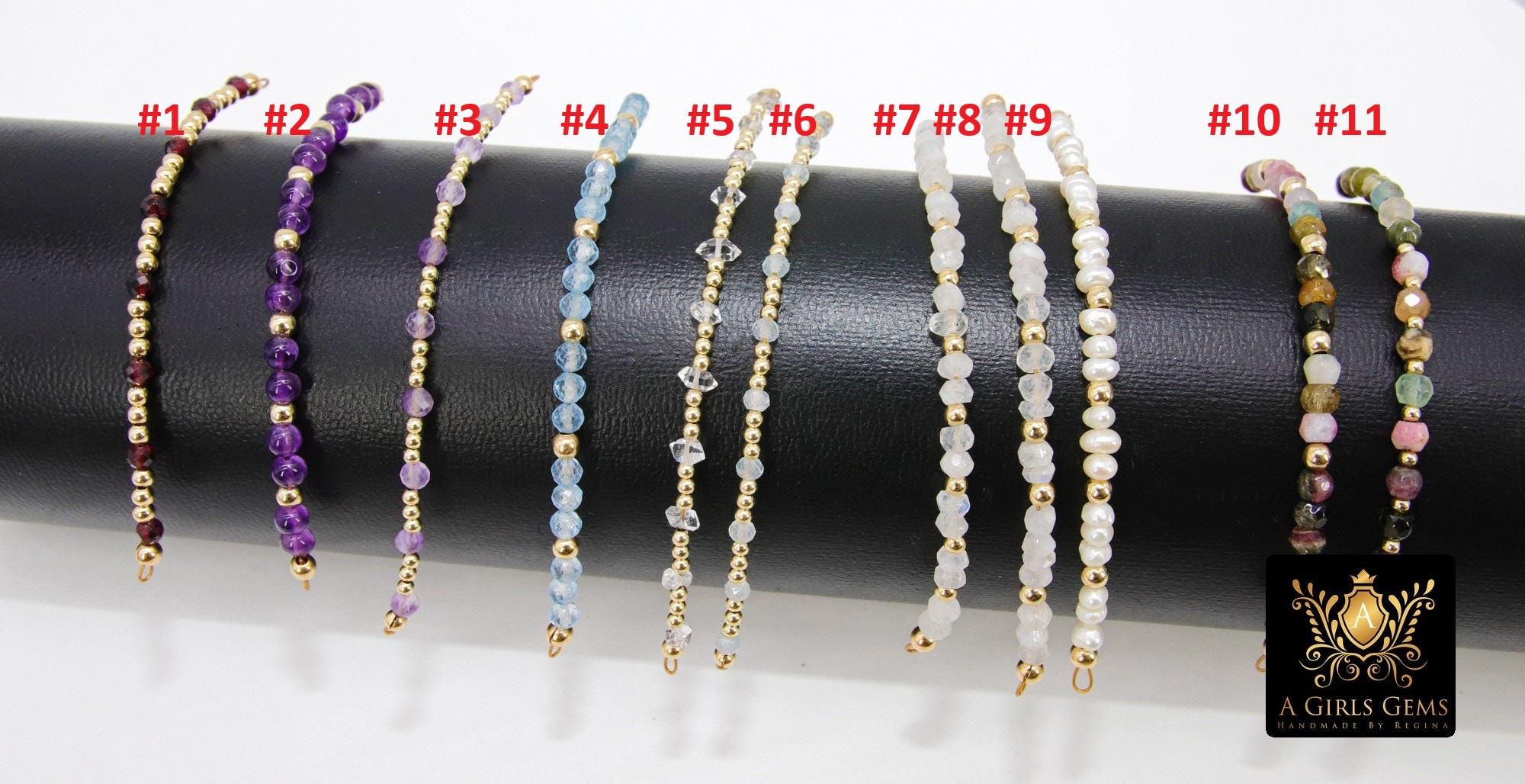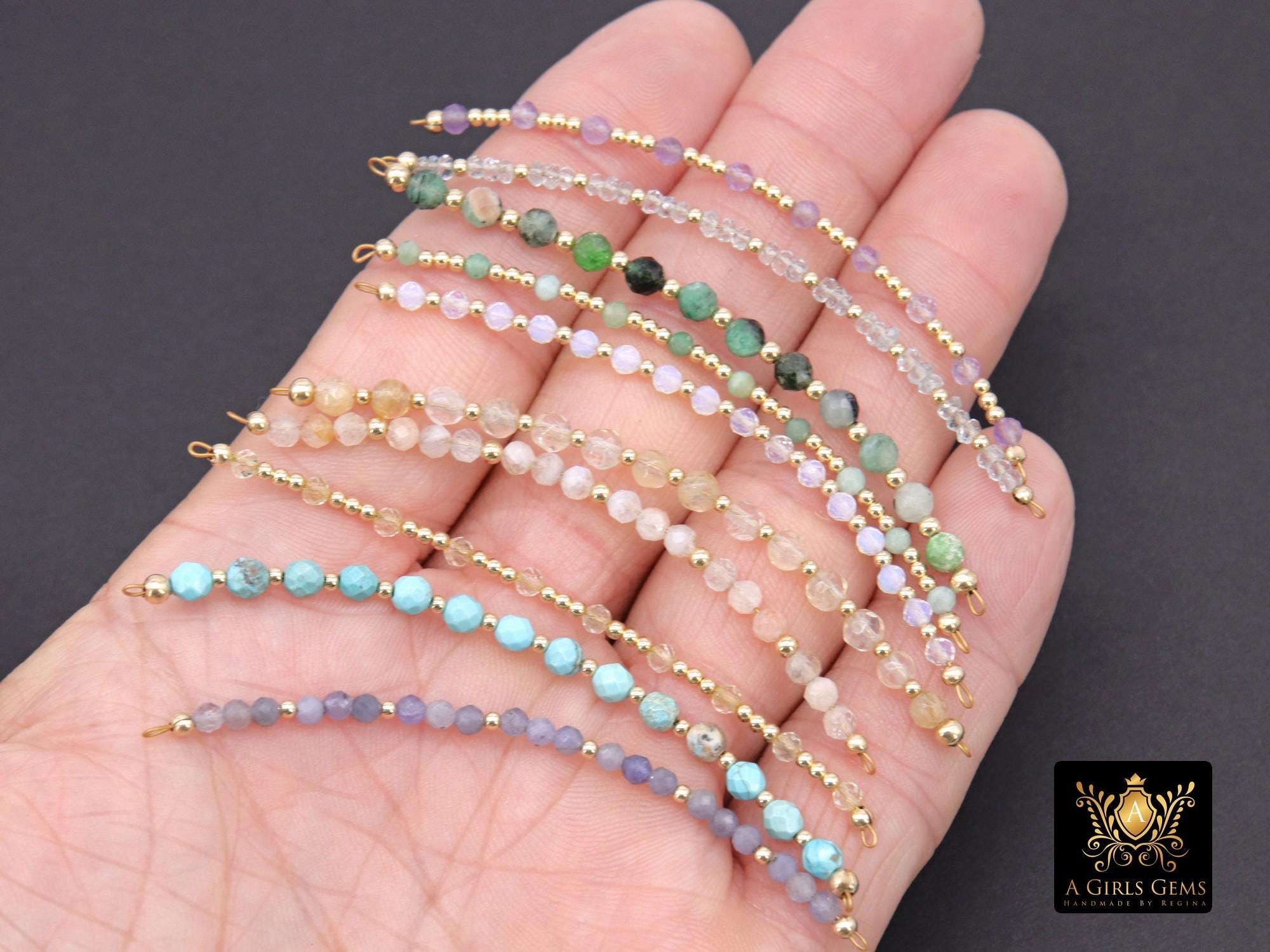 Genuine Permanent Jewelry 14 K Gold Filled or 925 Sterling Silver Connector Bars, Long Beaded Link Findings, Faceted Birthstone Beads, Wire Wrapped, Mothers Day Gifts, Husband Wife Gifts For Her or Him